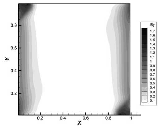 Фиг. 6. Распределение компоненты магнитной индукции By на момент времени 0.05 мкс, z = 0.5.