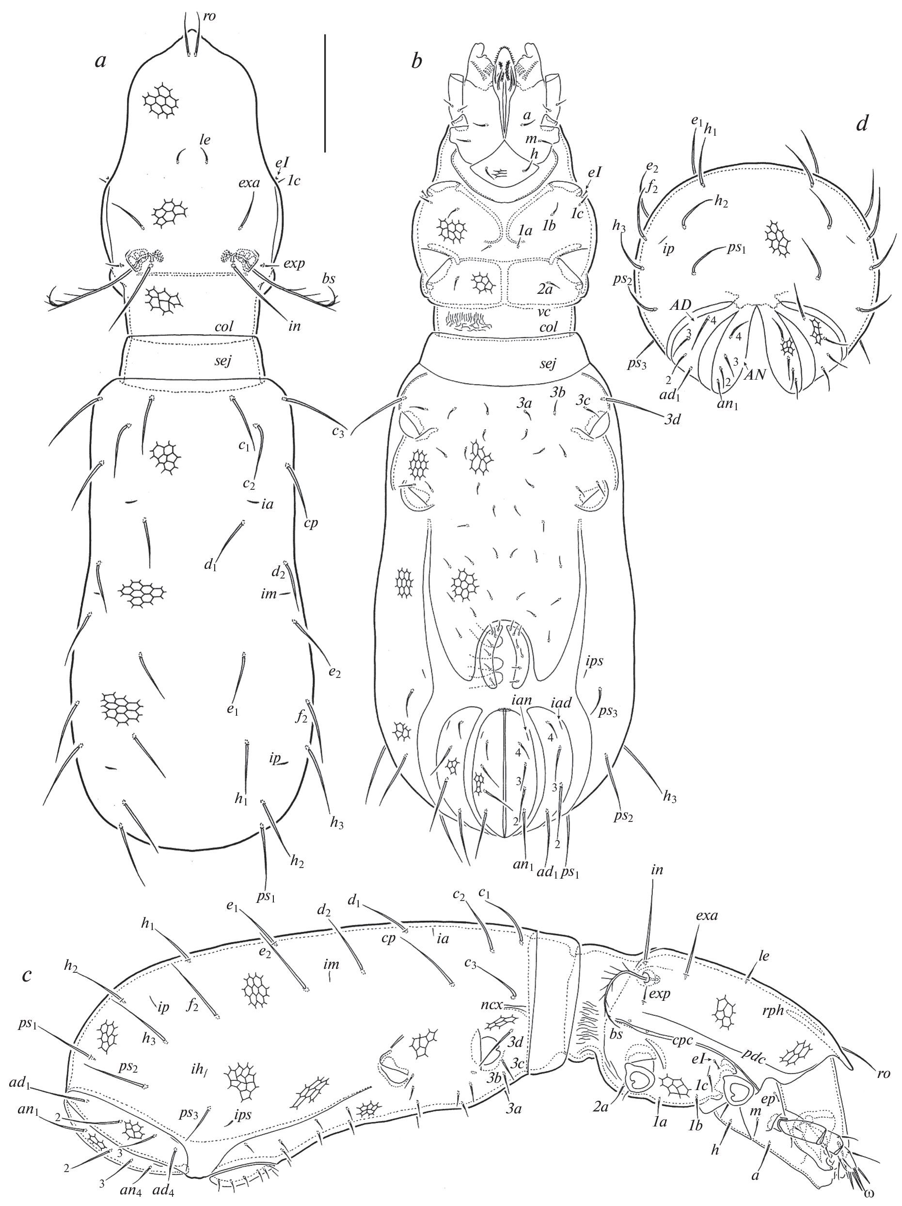 - Seniczak S., Seniczak A., 2013. Morphology of juvenile stages and ontogeny of three species of Damaeidae (Acari: Oribatida) // International Journal of Acarology. V. 39. № 2. P. 160–179.