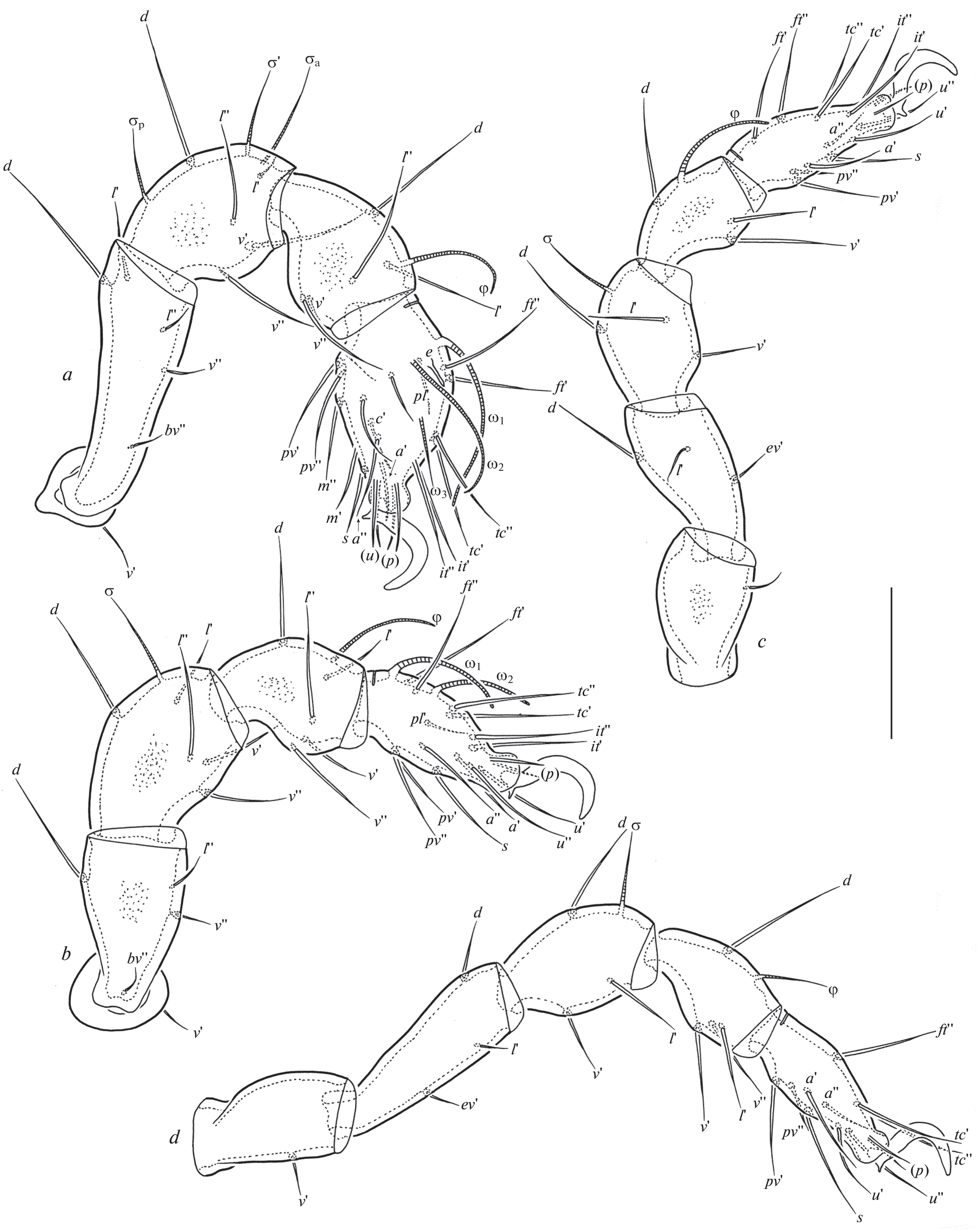 - Norton R.A., 1977. A review of F. Grandjean’s system of leg chaetotaxy in the Oribatei (Acari) and its application to the family Damaeidae // Dindal D.L., ed. Biology of oribatid mites. Syracuse, SUNY College of Environmental Science and Forestry. P. 33–61.
