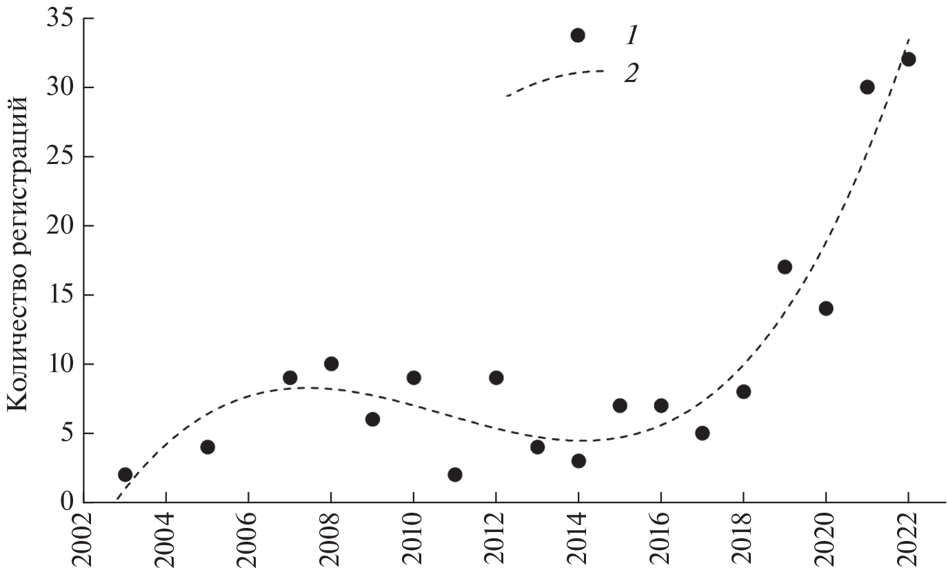 Southeastern Fennoscandia, which encompasses the Republic of Karelia and the adjacent districts of the Leningrad and Arkhangelsk regions, until lately remained an area of Russia’s European North especially poorly prospected as regards the status of the European hedgehog (Erinaceus europaeus). Modern (2001–2022) records of this species obtained through the authors’ original observations and based on reports received from respondents, altogether covering 212 hedgehogs and 182 encounters, are analyzed. Spatio-temporal patterns in the species’ records in the region are demonstrated, viz. an expanding distribution area and a growing frequency of encounters from northwest to southeast. The northernmost records are shown (64.368° N, 30.383° E), including yearlings (63.624°–63.924° N, 30.466°–30.901° E, northern taiga subzone), as well as the first reports of the species east of Lake Onego both in Karelia and the Arkhangelsk Region. The studies have revealed habitat preferences and the rate of use of urban territories in the north of the distribution range: high shares of records come from deciduous (34.0% of the total number of animals reported) and mixed (19.3%) forest sites, as well as farmland (10.8%), second-home communities (16.5%), and rural settlements (9.0%). Hedgehog encounters in cut-over places, pine and spruce stands, wetlands, abandoned hamlets, and solitary buildings in the woods were few (0.5–6.1%). Most of the records were a result of accidental sightings by humans (80.8%), while domestic dogs spotted 19.2% of the hedgehogs. The earliest encounters in spring were recorded on 25.04–11.05, the latest in autumn on 2–17.09. The number of hedgehog encounters during their active life period was the lowest in April (1.1%), growing sharply in May and June (16.7 and 17.8%, respectively), peaking in July and August (30.0 and 24.4%), and falling sharply in September (10.0%). Some of the population parameters were determined: an average brood was 2.8 young of the year, whose share amounted to 24.5% of the total number of records; active single animals prevailed among adults (86.3%), and much smaller shares belonged to active pairs (7.6%) and females with litter (6.1%). The main cause of the deaths was road killing by vehicles (77.4%). Climate warming and forest structure alterations may be reasons to expect further expansions of the area of hedgehog encounters, e.g., to transformed and urbanized boreal areas.