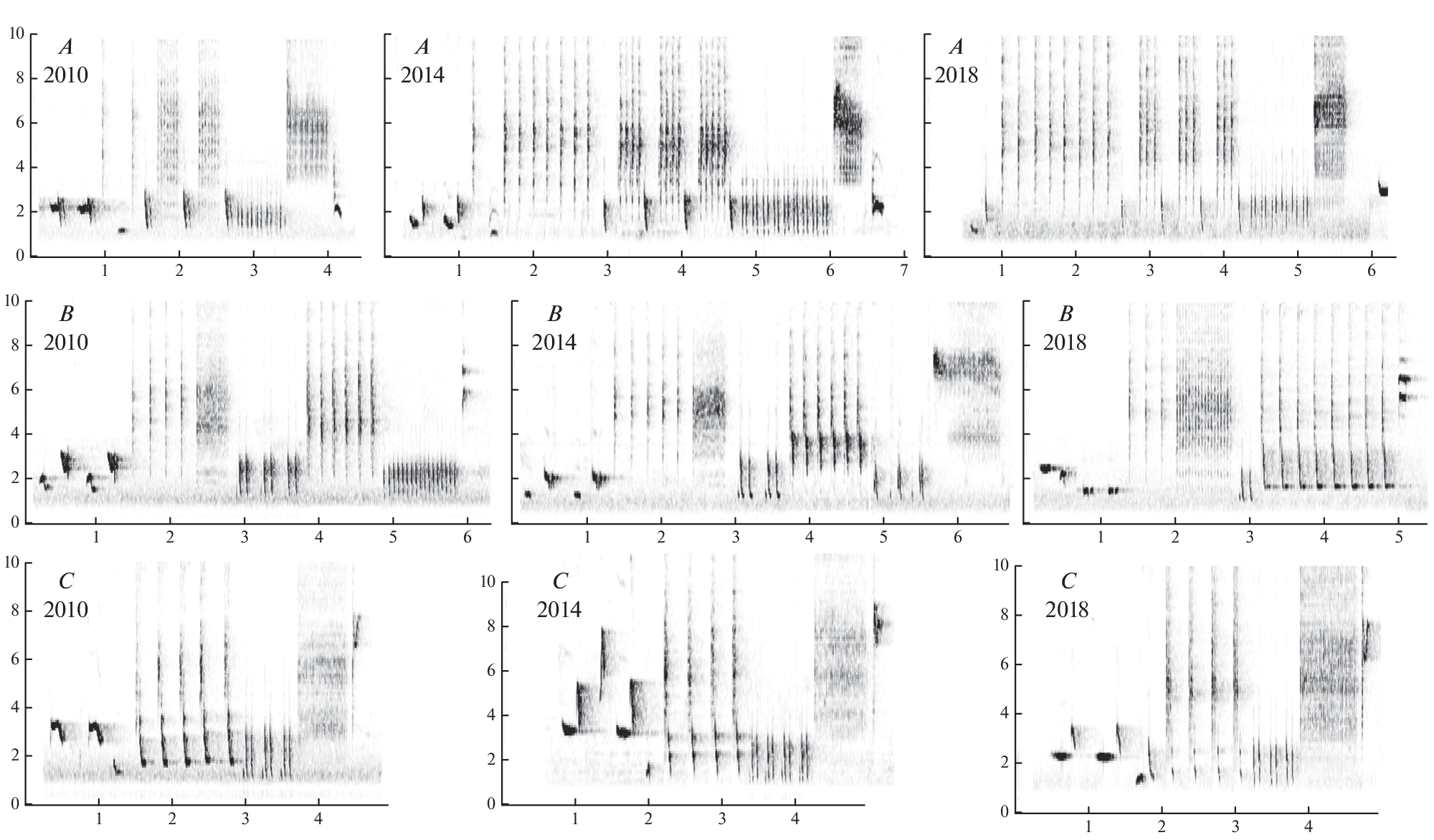 - Tyarks S.C., Aniceto A.S., Ahonen H., Pedersen G., Lindstrøm U., 2022. Changes in humpback whale song structure and complexity reveal a rapid evolution on a feeding ground in Northern Norway // Frontiers Marine Sciences. V. 9. https://doi.org/10.3389/fmars.2022.862794