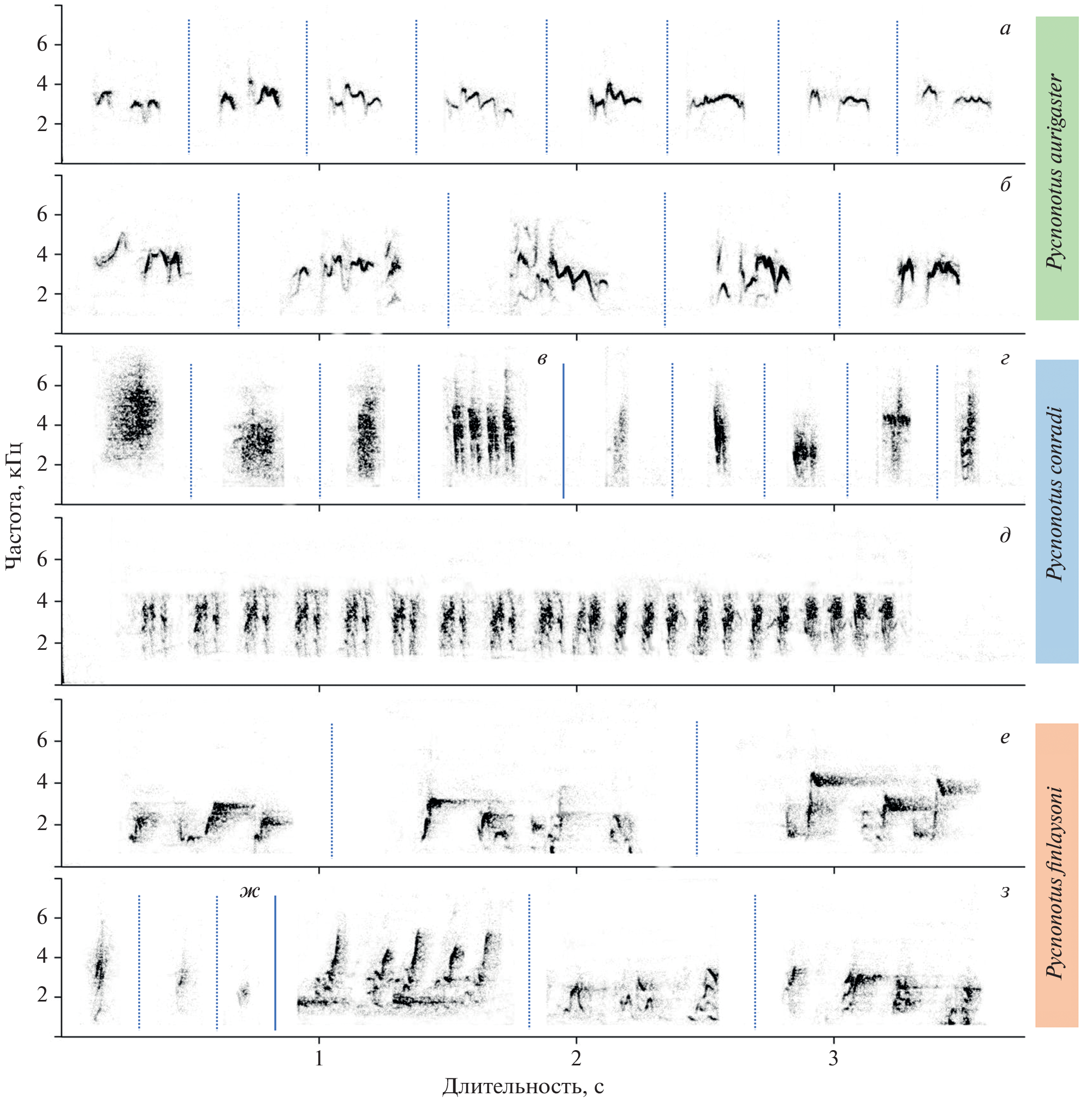 18. Lloyd P., Hulley P.E., Craig A.J.F.K., 1996. Comparison of the vocalizations and social behaviour of southern African Pycnonotus bulbuls // Ostrich. V. 67. P. 118–125.