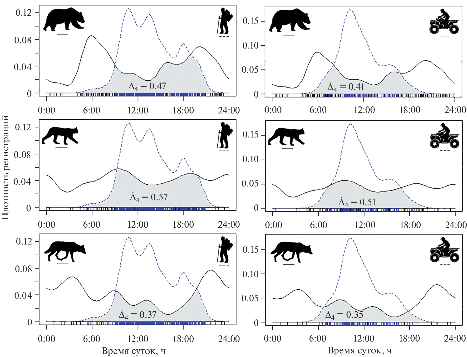 - Ridout M.S., Linkie M., 2009. Estimating overlap of daily activity patterns from camera trap data // Journal of Agricultural, Biological, and Environmental Statistics. V. 14. P. 322–337.
