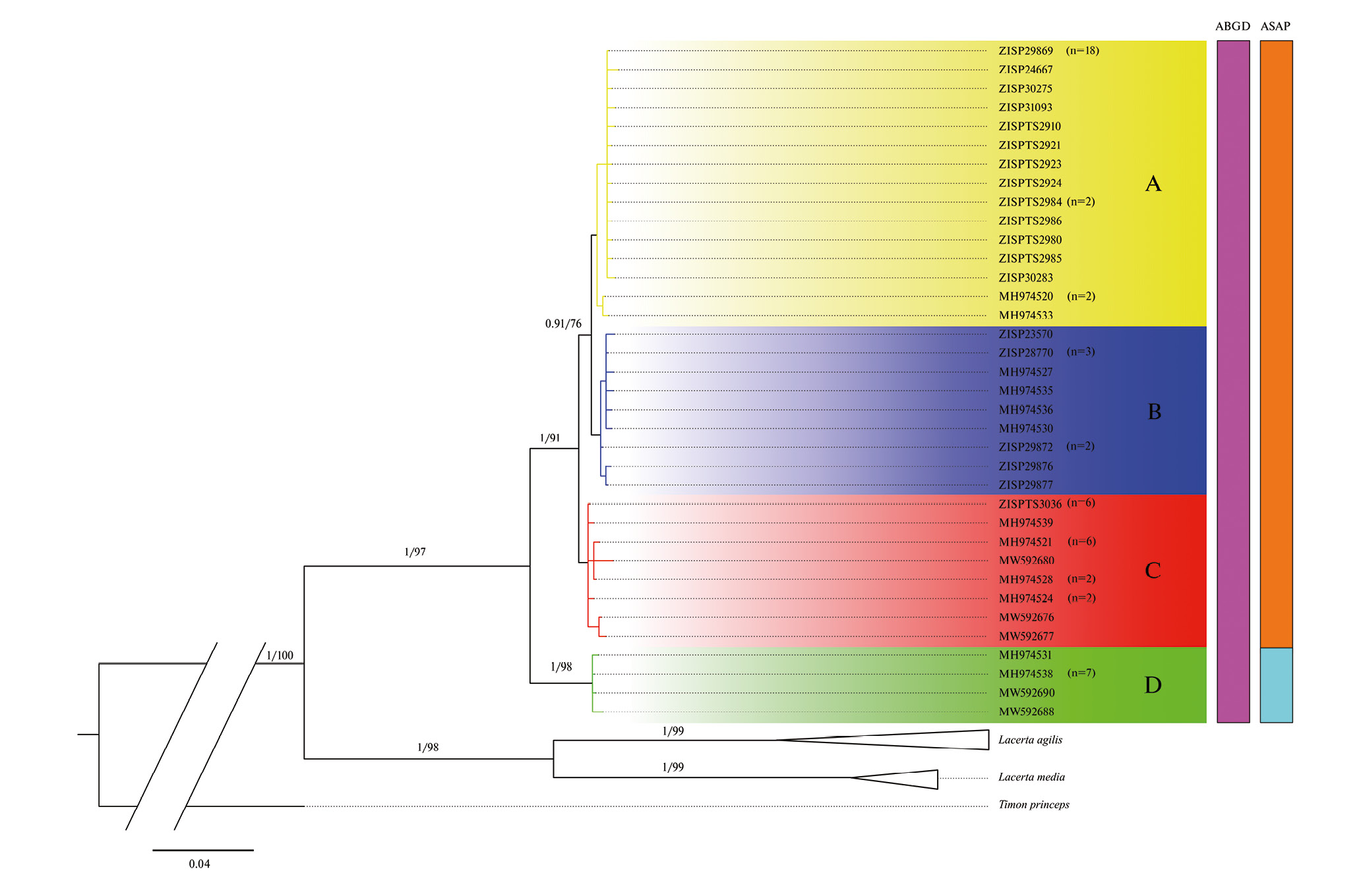 Целью данной работы было проведение генетического анализа особей полосатой ящерицы с территорий, ранее не охваченных пунктами отбора проб, сопоставление новых данных с результатами предыдущих исследований и существующими гипотезами по истории формирования ареала вида. Поскольку ряд полученных проб L. strigata происходит из зоны симпатрии с L. agilis, была изучена и возможность гибридизации этих видов в природных условиях.