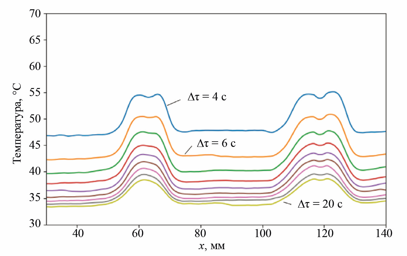 При проведении эксперимента температурное поле регистрировали с максимальной технически возможной частотой кадров для выбранной камеры — (20—30) Гц.