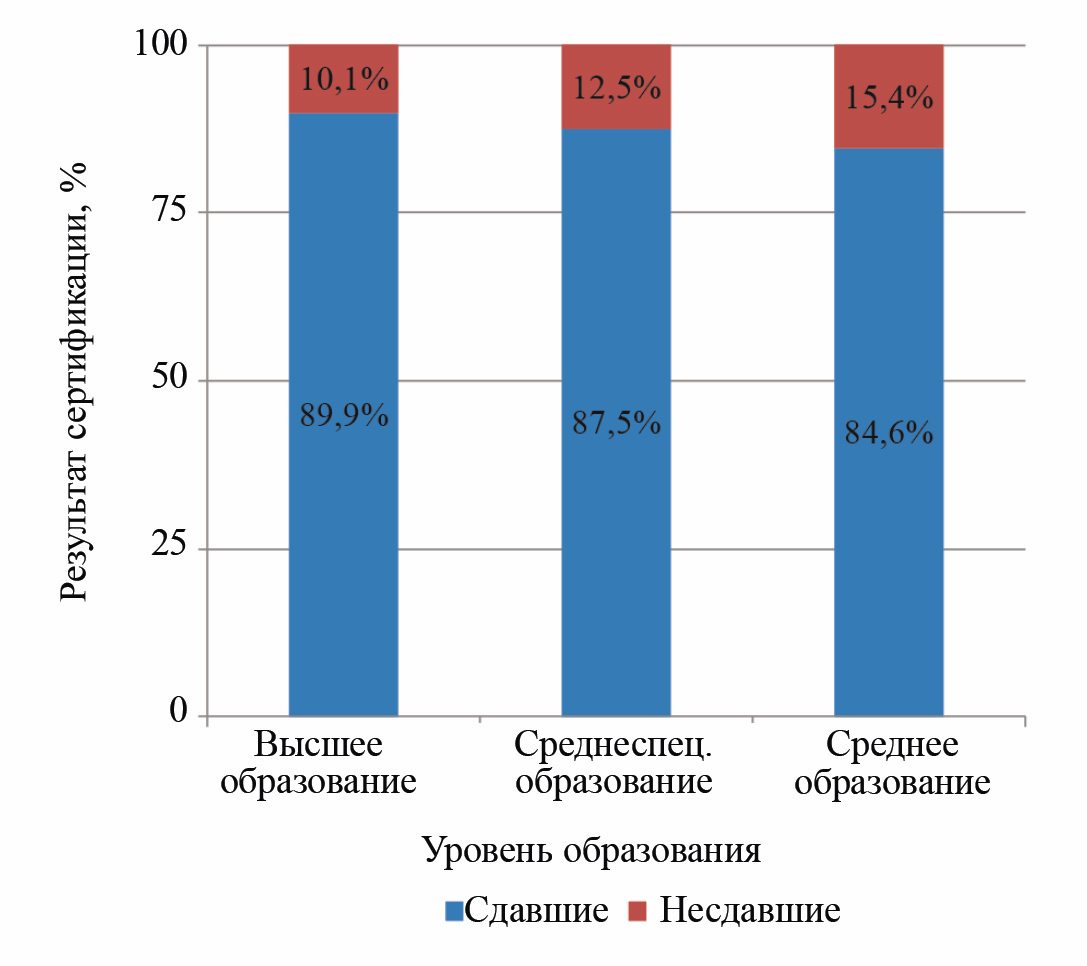 Рис. 4. Результат сдачи квалификационных экзаменов в зависимости от уровня образования