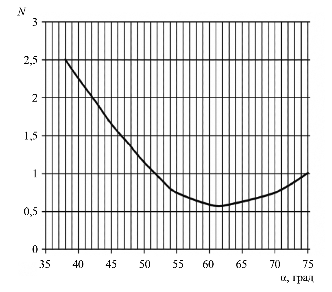 где коэффициент N определяется углом ввода УЗ волн согласно графику на рис. 8. Однако проблема в том, что требования к размерам и ориентации сегментных и в особенности угловых отражателей также очень сложно выполнить.