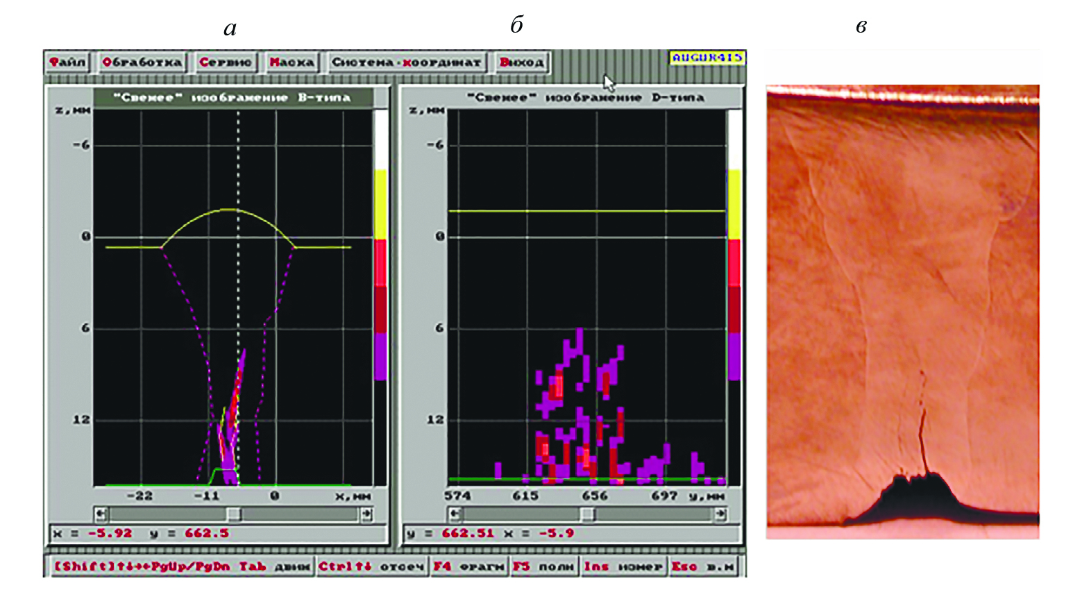 Таким образом, в настоящее время вряд ли можно считать, что погрешность измерения раскрытия плоскостных дефектов по УЗ томограммам достаточно мала, чтобы уверенно оценивать координаты острия и раскрытие плоскостных дефектов с погрешностью менее миллиметра.