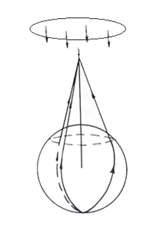 Рис. 6. «Светящаяся» линия на сферическом отражателе при рассеянии «назад»