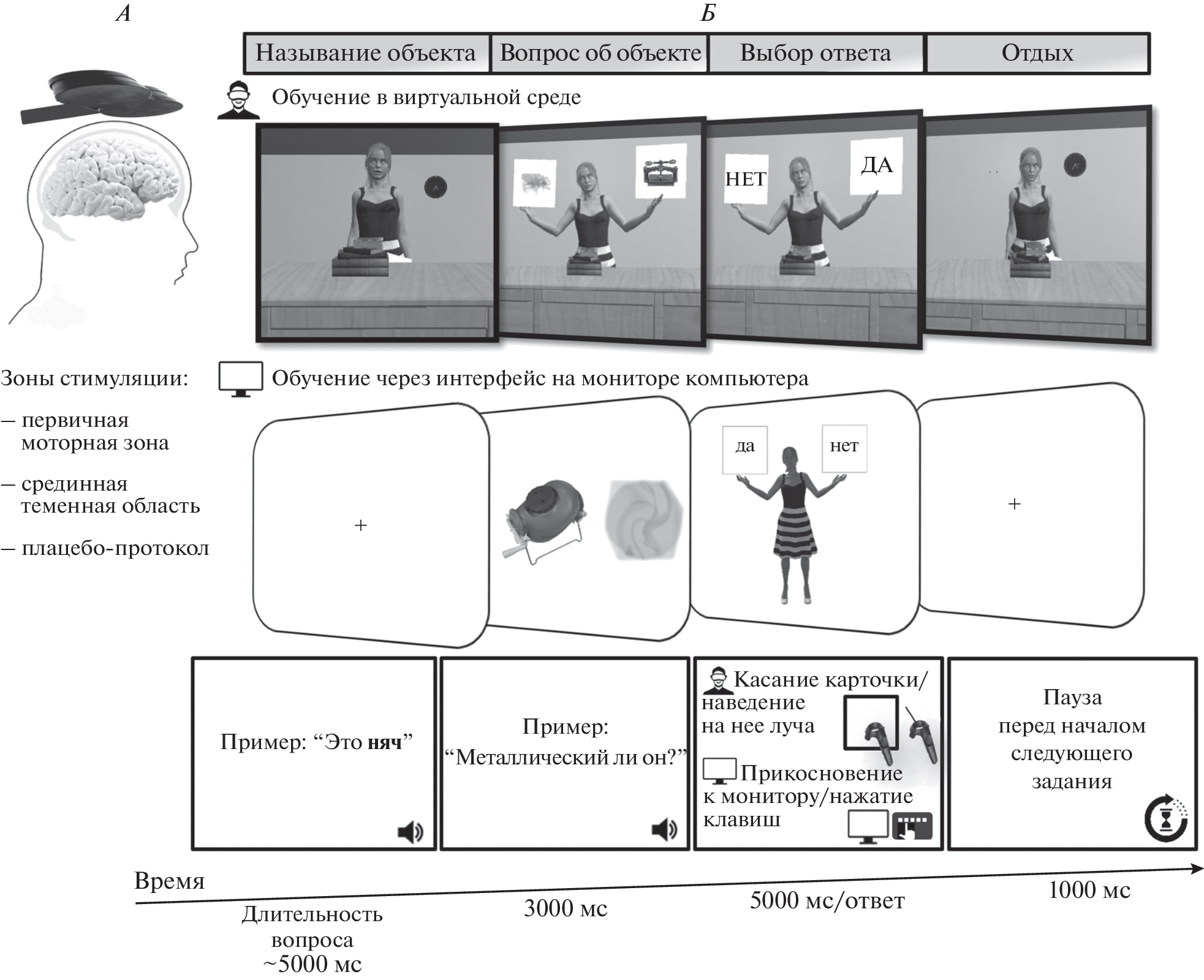 Моторная кора головного мозга (ГМ) человека задействуется на различных этапах речевого научения в том случае, если оно происходит одновременно с совершением двигательной активности. Однако в исследованиях, направленных на поиск причинно-следственных связей между активацией первичной моторной коры (М1) и эффективностью выполнения речевых задач, обнаруживаются противоречивые результаты, что, возможно, обусловлено различиями в средах обучения и характере двигательной активности, задействованной в экспериментальной процедуре. Целью данной работы стало исследование влияния активности моторной коры на эффективность запоминания новых слов при варьировании условий обучения и способа совершения моторного ответа. Активность моторной коры модулировалась при помощи ритмической транскраниальной магнитной стимуляции (рТМС) ГМ. После рТМС зоны М1 либо применения контрольных условий (плацебо-ТМС, активный контроль) участники исследования (n = 96) выполняли задания на усвоение новых слов посредством установления ассоциаций между визуально представленными изображениями предметов и аудиально предложенными словоформами в двух обучающих средах: при помощи компьютерного монитора либо в интерфейсе виртуальной реальности. В каждом условии испытуемым предъявлялись восемь новых слов с семантической привязкой и вопросом о визуальных характеристиках стимулов. Ответы на обучающие задания участники давали посредством выполнения дистальных высокоамплитудных движений рукой или проксимальных низкоамплитудных движений пальцами кисти. В качестве показателя эффективности усвоения новых слов использовалась правильность воспроизведения изученных слов сразу после обучения и на следующий день. В обеих средах обучения были обнаружены значимые различия в успешности воспроизведения новых слов сразу после стимуляции и на следующий день для испытуемых, получивших рТМС зоны М1 первичной моторной коры, в тех случаях, когда они давали ответы посредством совершения низкоамплитудных движений пальцами. Полученные результаты позволяют сделать вывод об участии моторной коры в речевом научении при интерактивном взаимодействии субъекта с обучающим материалом.
