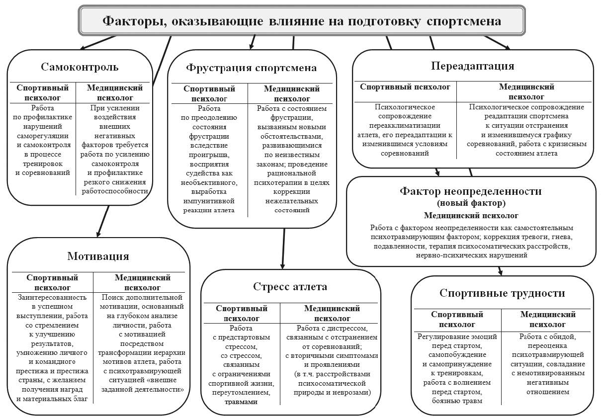 Рис. Факторы, оказывающие влияние на подготовку спортсмена и требующие медико-психологического вмешательства