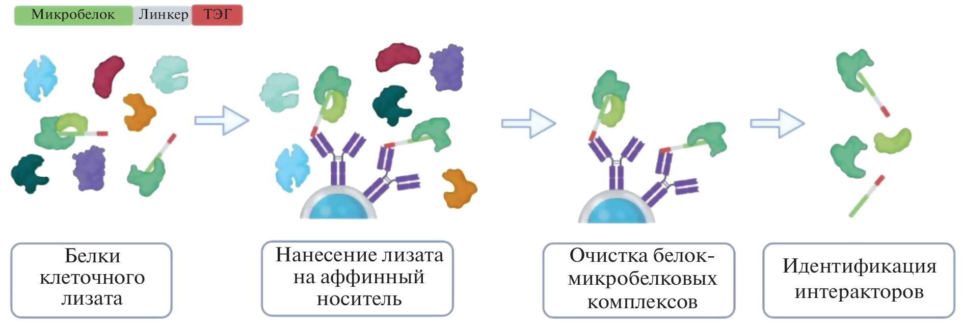 Recent studies have shown that small open reading frames (sORFs, <100 codons) can encode peptides or microproteins that perform important functions in prokaryotic and eukaryotic cells. It has been established that sORF translation products are involved in the regulation of many processes, for example, they modulate the activity of the mitochondrial respiratory chain or the functions of muscle cells in mammals. However, the identification and subsequent functional analysis of peptides or microproteins encoded by sORFs is a non-trivial task and requires the use of special approaches. One of the critical steps in functional analysis is identification of protein partners of the peptide under study. This review considers the features of the interactome analysis of short protein molecules and describes the approaches currently used for studies in the field.