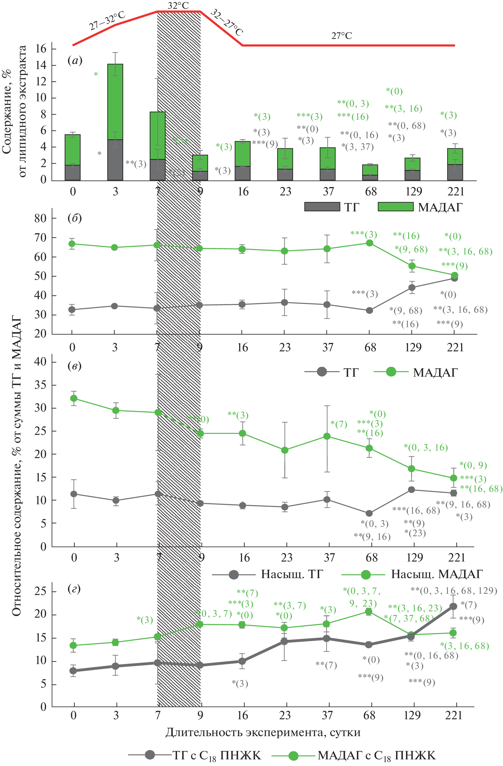 Динамика изменений запасных липидов при восстановлении частично обесцвеченного коралла Sinularia heterospiculata