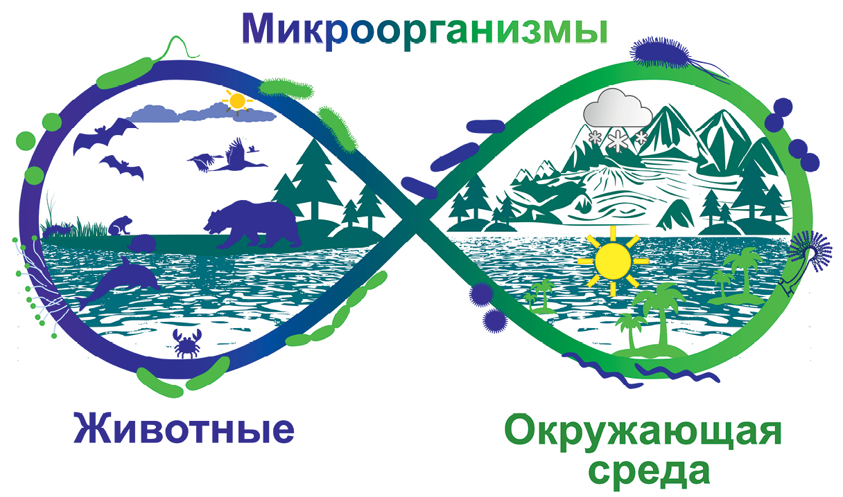 Рис. 1. Повсеместное присутствие и постоянная циркуляция микроорганизмов в экосистемах.