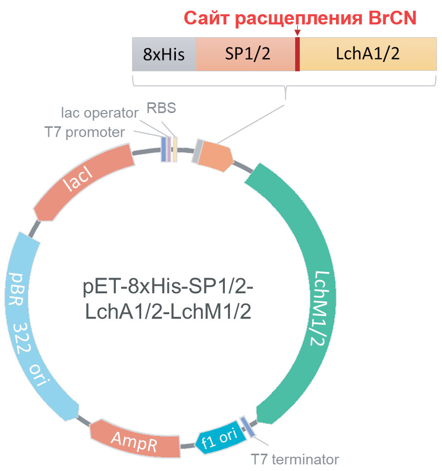 Рис. 2. Схематичное представление экспрессионных плазмид для получения рекомбинантных компонентов лихеницидина.