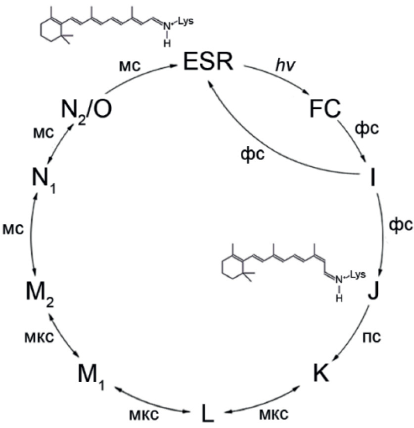- Govindjee R., Balashov S.P., Ebrey T.G. // Biophys. J. 1990. V. 58. P. 597−608. https://doi.org/10.1016/S0006-3495(90)82403-6