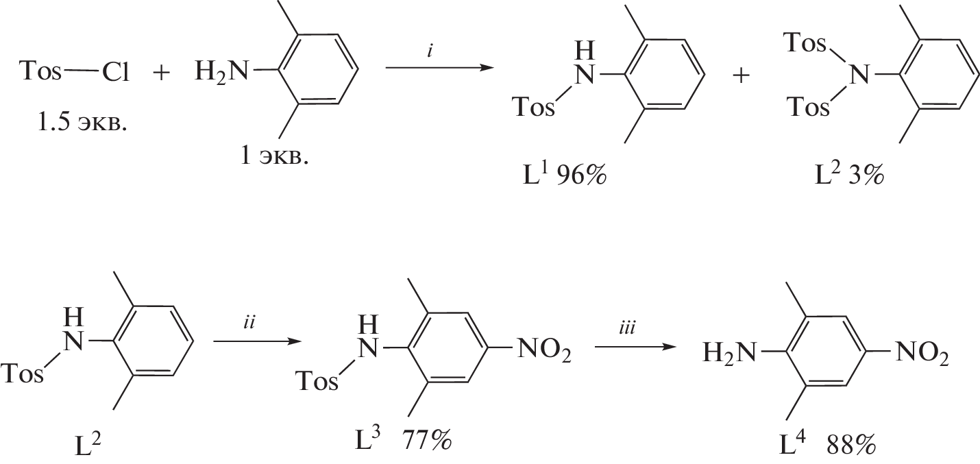 and II, as well as the ligand precursor 2,6-dimethyl-4-nitroaniline L4 (CIF files CCDC nos. 2255106 (I),