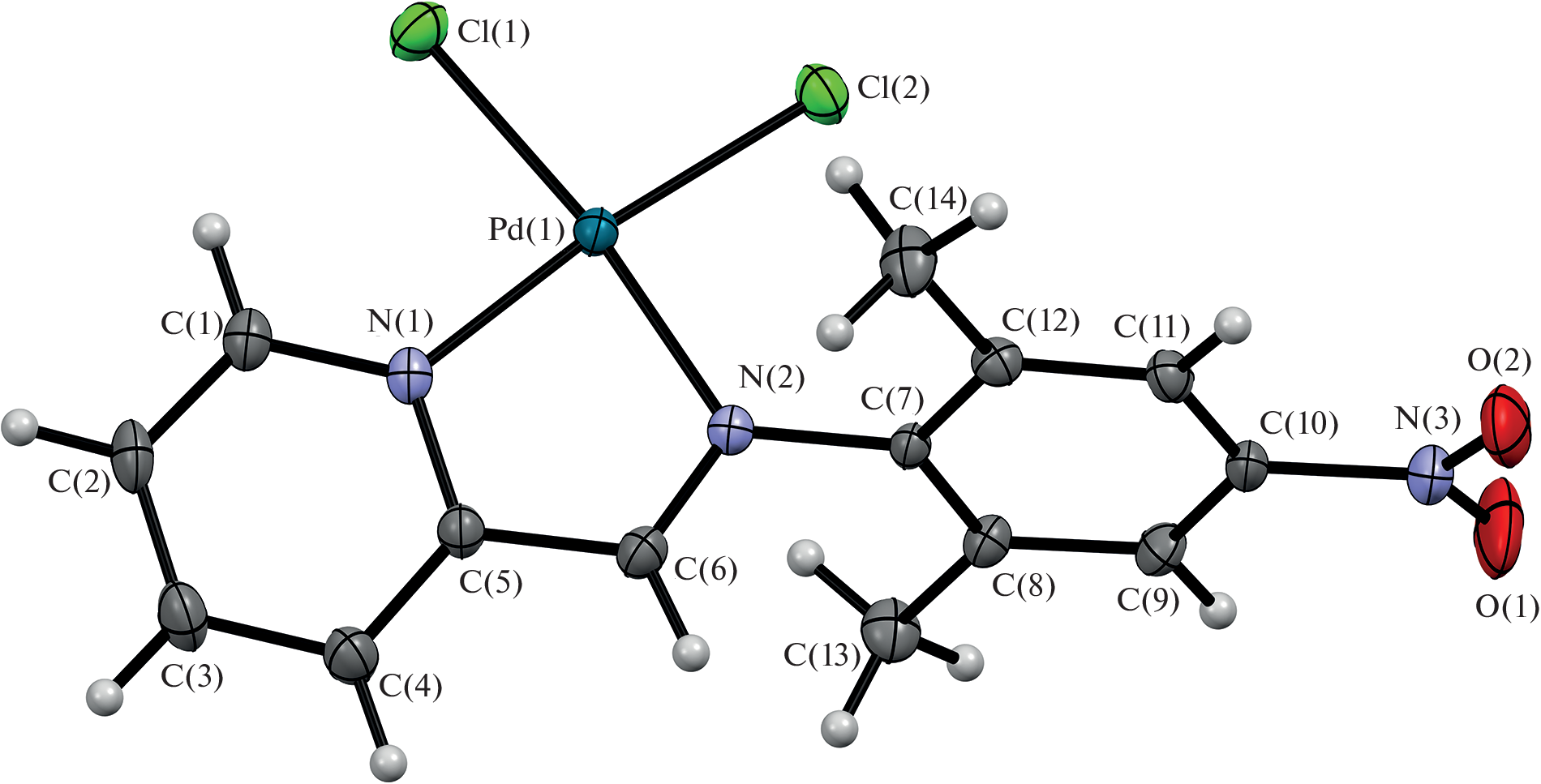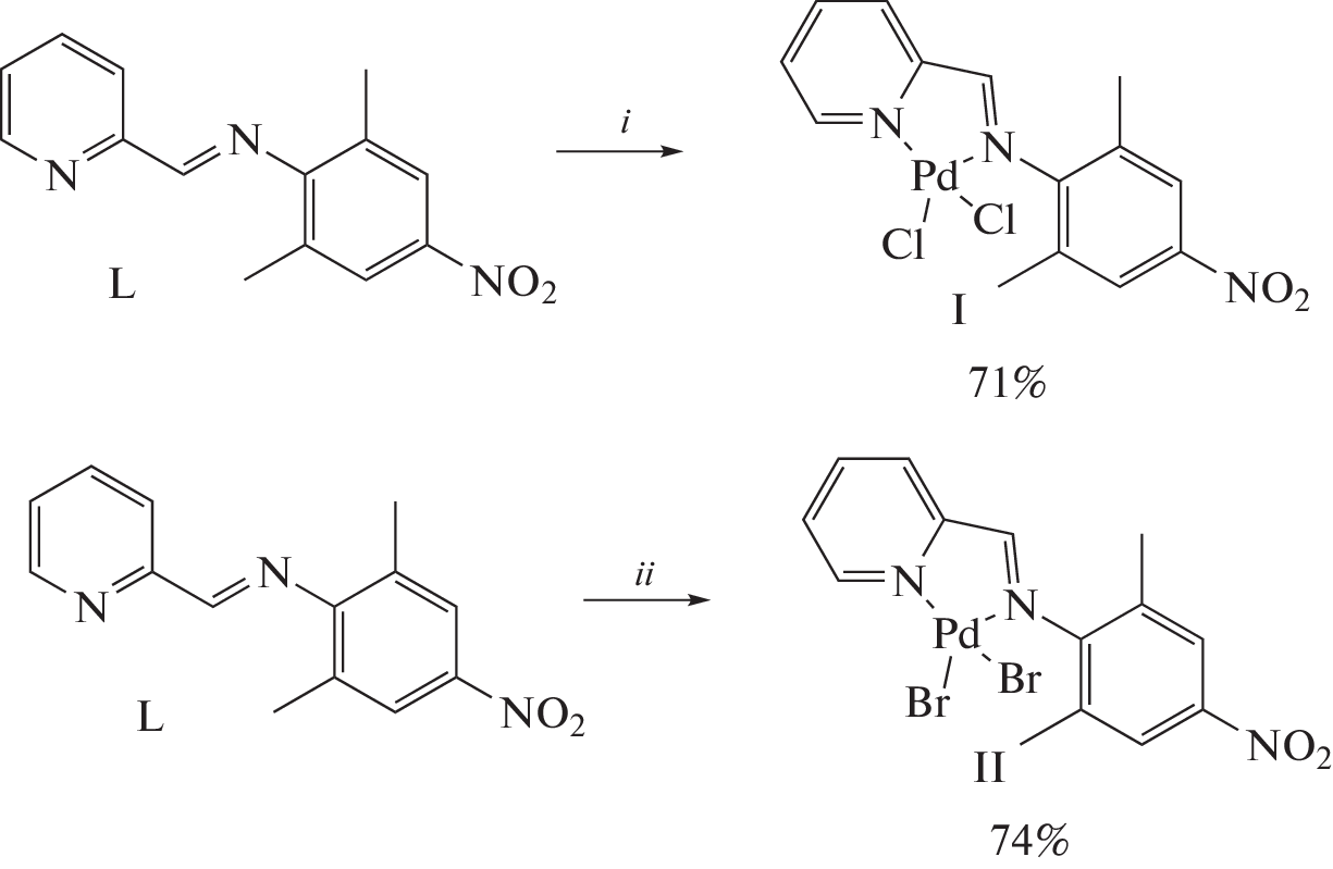 where L = 2,6-dimethyl-4-nitro-N-(pyridin-2-ylmethylildene)aniline, a ligand with a purported ability to