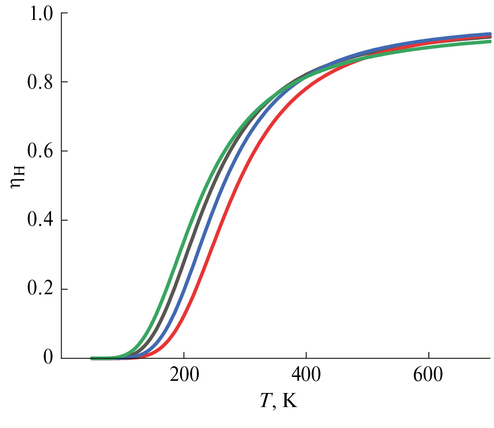 Аппроксимация экспериментально наблюденных величин химического сдвига с использованием уравнения (9) позволила определить термодинамические параметры изучаемого спинового перехода во всех растворителях (табл. 1) и визуализировать температурную зависимость заселенности спиновых состояний (рис. 3).