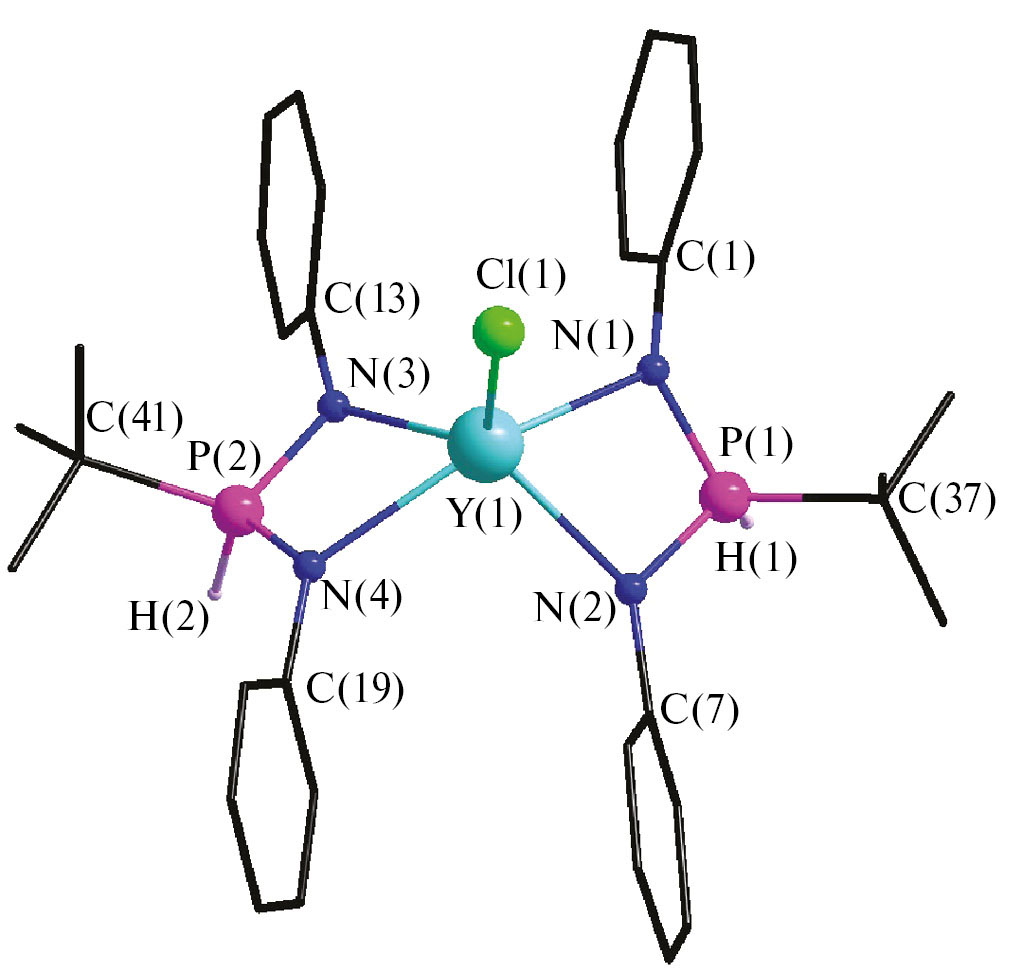 5. Fig. 2. The structure of the molecule [Y(tBuPH(NMes)2)2Cl]([Y(HL)2Cl]). The CH3 groups of mesitylene fragments and hydrogen atoms at carbon atoms are not shown.