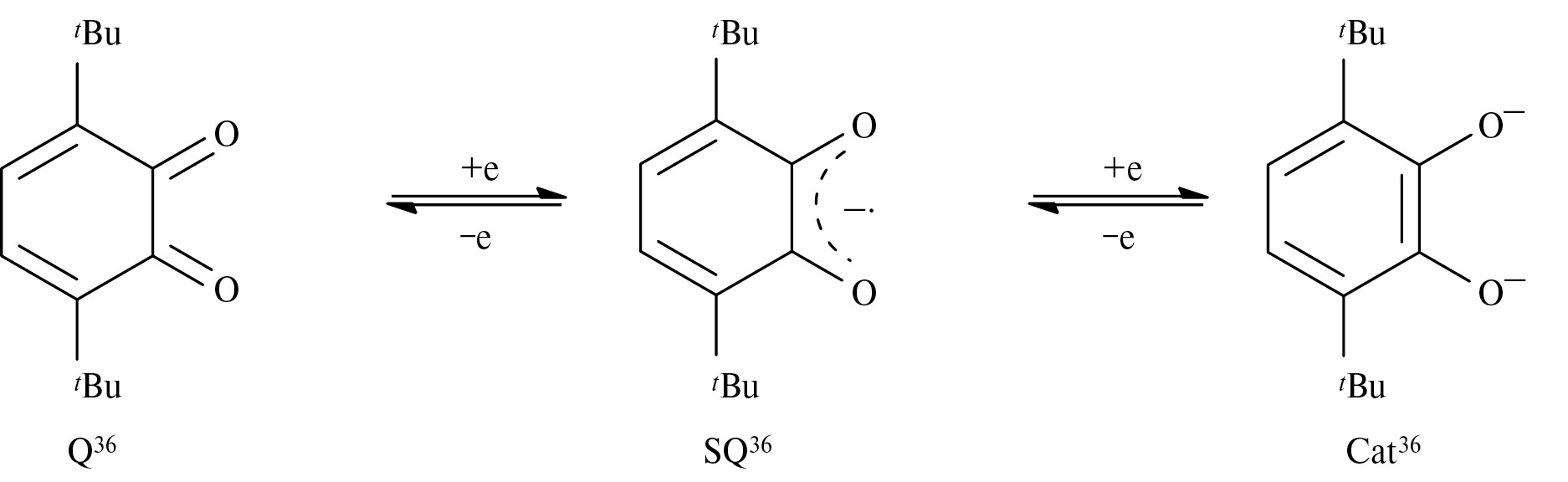 Химия комплексов непереходных элементов с редокс-активными лигандами, способными существовать в нескольких окислительных состояниях, активно изучается в последние десятилетия [1, 2]. Классическим примером таких лигандов являются производные 1,2-бензохинона (диоксолены), способные к ступенчатому восстановлению до о-семихинолятного анион-радикала и катехолатного дианиона (схема 1).