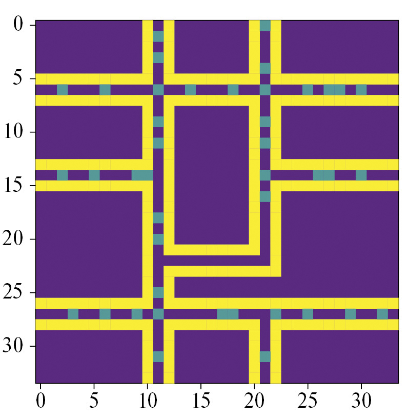 Рис. 4. Элемент транспортной сети, смоделированной с помощью клеточного автомата.