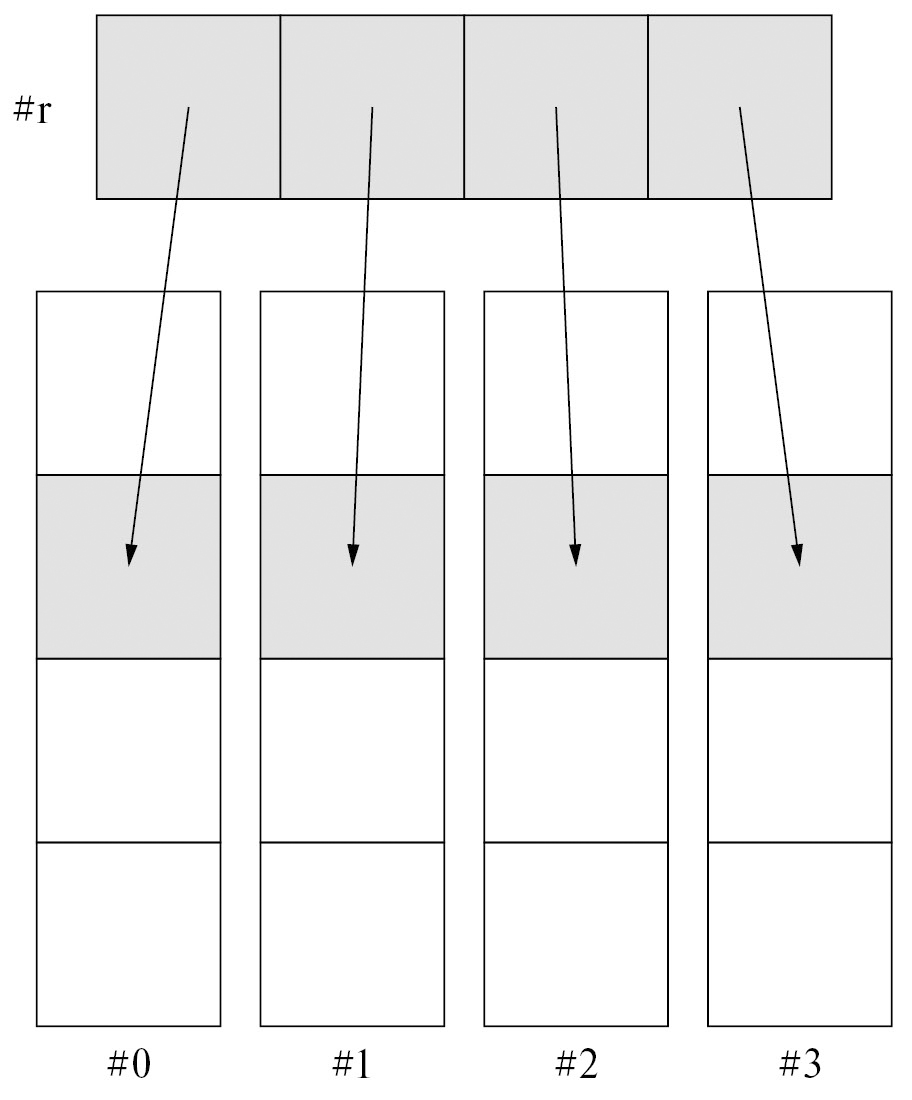 Соответственно, процесс ранга r оперирует двумя сеточными функциями (массивами) решения, определенными на сетках , .