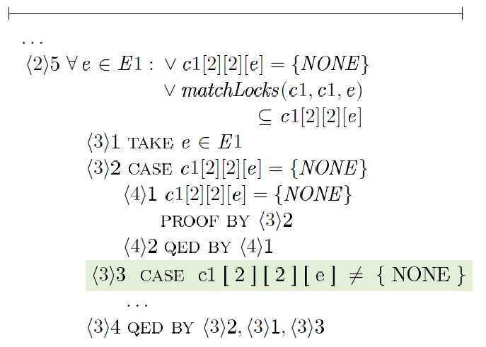 Использование таких средств, как TLAPS, безусловно влечет дополнительные трудозатраты, вызванные необходимостью трансляции доказательств в формулы TLA+, но в то же время предоставляет дополнительные гарантии корректности получаемых результатов.