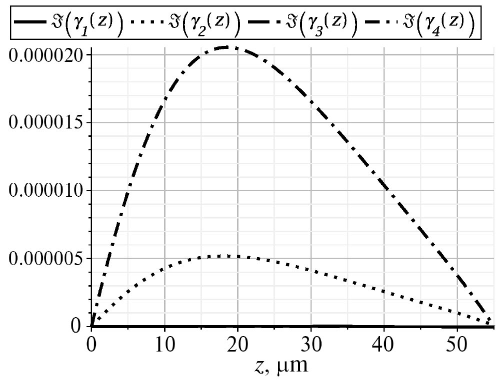 Рис. 3. Величины ℑ(γj(z)), j = 1..4 для z ∈ [0,L].