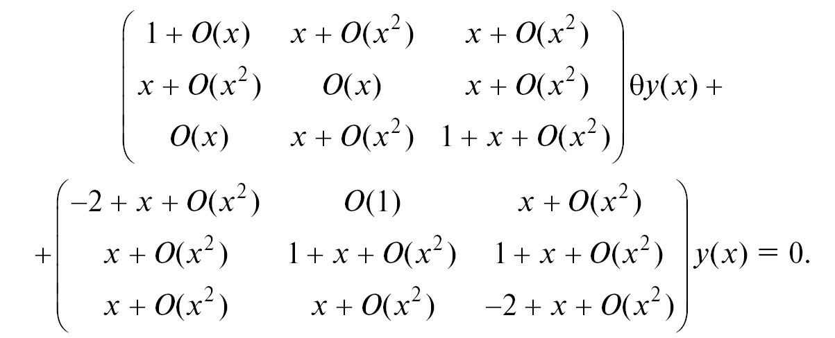 3x+O(x2)7x2+O(x4)O(x2)17x2+O(x4)θ2y(x)++1+2x+O(x2)x+5x2+O(x4)O(x2)11x2+O(x4)θy(x)++O(1)x3x2+O(x4)1+O(x2)6x2+O(x4)y(x)=0.  (8)