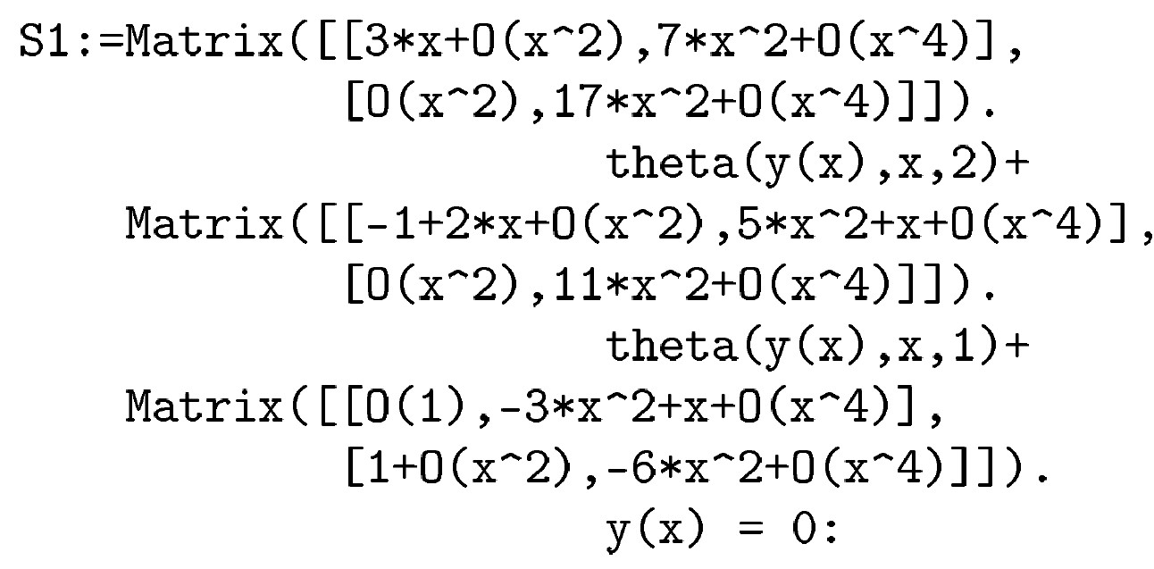 где y(x)=(y1(x),y2(x),,ym(x))T — вектор неизвестных, Ar(x),,A0(x) — m × m-матрицы коэффициентов с элементами в виде степенных рядов по x над алгебраически замкнутым полем чисел, θ=xddx.