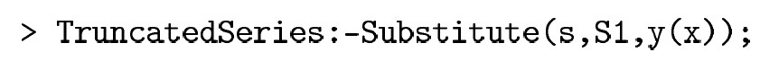 Дополнительно нами была реализована вспомогательная процедура Substitute, которая принимает на вход решение (или предполагаемое решение) системы в том виде, в котором выдается результат процедуры LaurentSolution, а также систему и имя, обозначающее вектор-столбец неизвестных в системе (аналогично аргументам процедуры LaurentSolution). Процедура подставляет в систему каждый из вектор-столбцов из набора W¯ в решении и выдает результаты подстановки в виде усеченных рядов. Также в качестве первого аргумента возможна передача не набора W¯ а только одного из векторов.