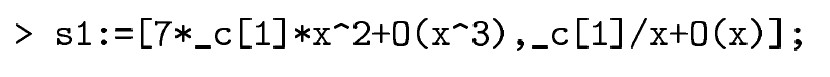 Приведем примеры вычисления лорановых решений усеченных систем в системе Maple 2023. Систему (8) задаем следующим образом: