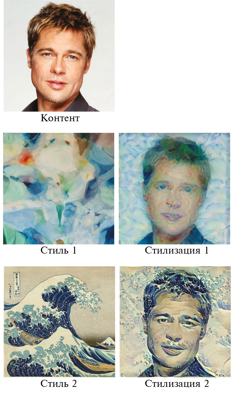 На рис. 1 видно, что качество стилизации существенно зависит от сочетаемости стилей контентного и стилевого изображений. Если они сочетаемы (стиль 2), то результат стилизации получается приемлемым. Если же стили контентного и стилевого изображений существенно различаются, например, по четкости, как при стилизации первым стилем (см. рис. 1), который более размыт, чем контент, то и стилизация получается неудовлетворительная. Получается, что для создания эффектных стилизаций пользователь вынужден долго перебирать вручную различные стили, пока не найдет стиль, который хорошо сочетается с контентом.