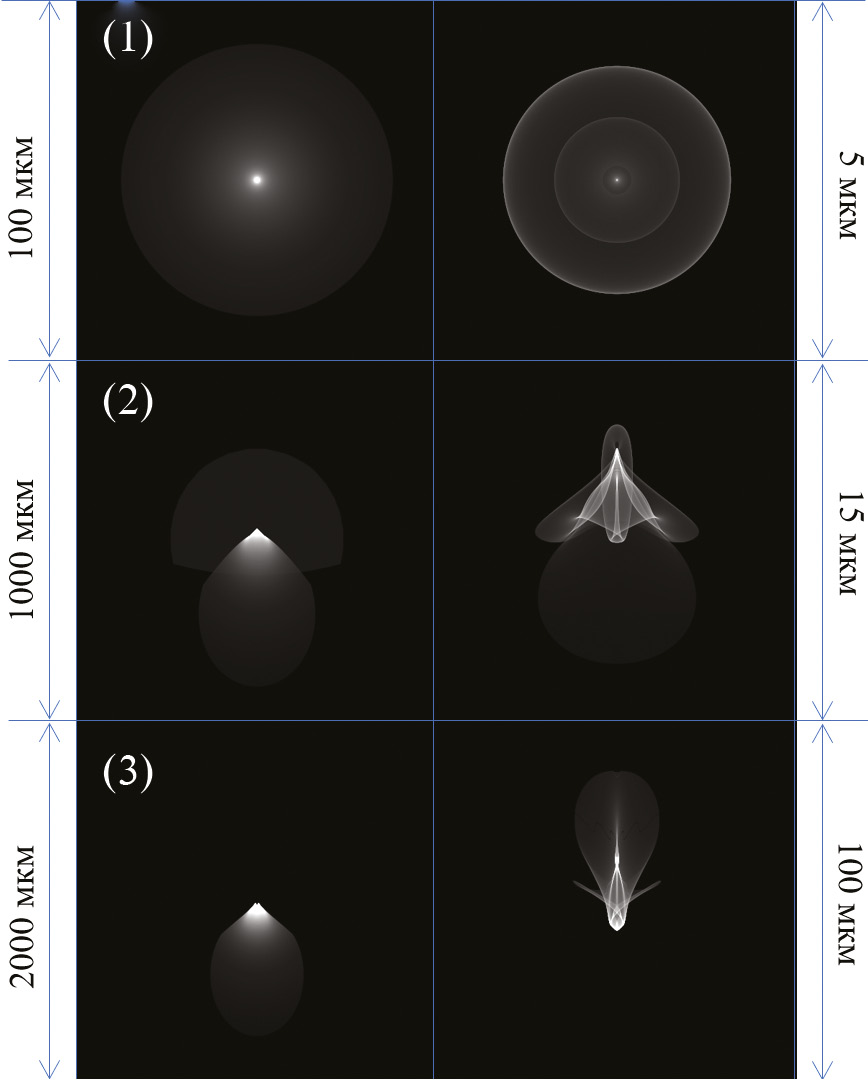 По результатам, представленным на рис. 4 и в табл. 1, видно, что высокое разрешение треугольной сетки не всегда может обеспечить требуемую точность вычислений. Особенно это касается высококачественных объективов, у которых ФРТ имеет радиус порядка 1 мкм.
