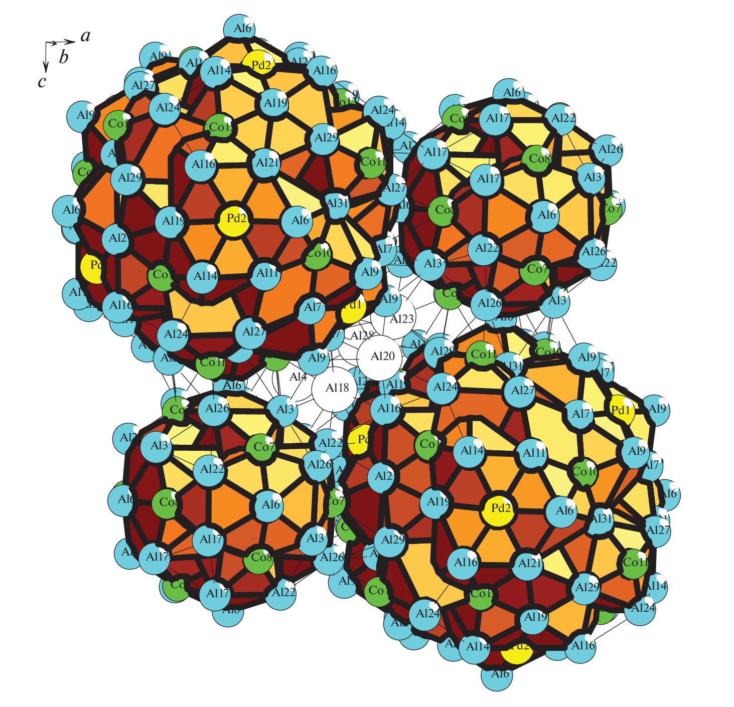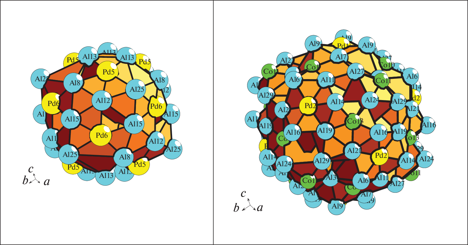- Sugiyama K., Yubuta K., Yokoyama Y., Suzuki S., Simura R. F – AlCoPdGe alloy with three types of Pseudo-Mackay clusters // Acta Physica Polonica A. 2014 V. 126. P. 588–593.