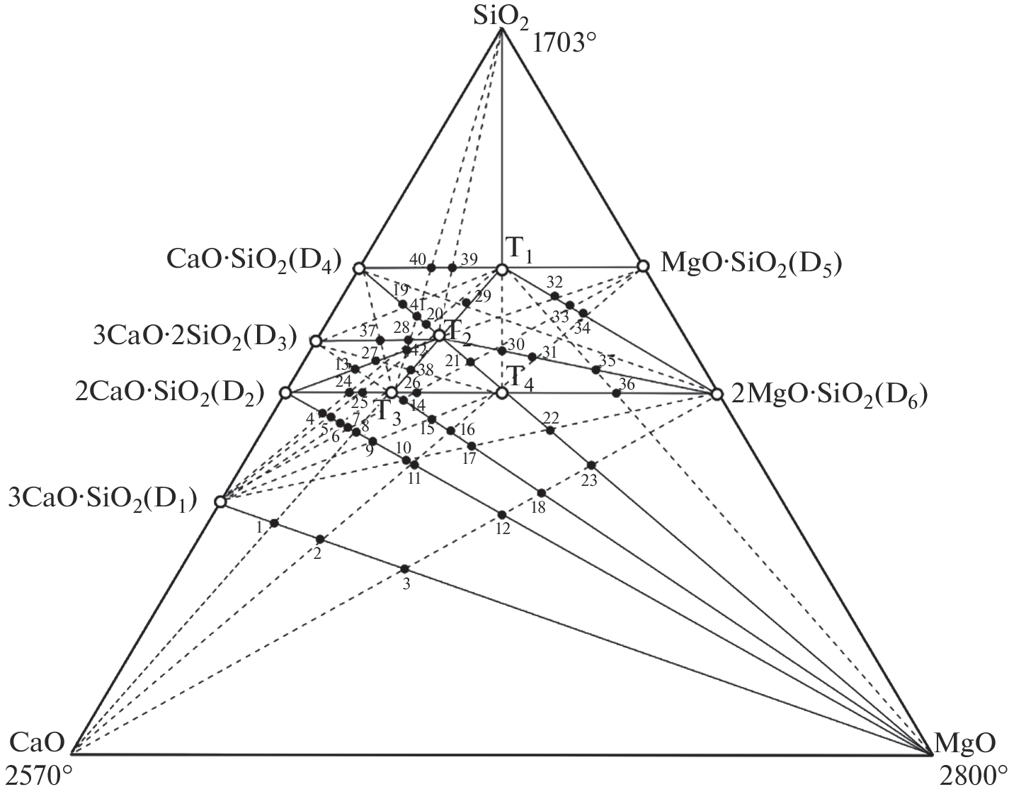 - Ma X.D., Zhang D.W., Zhao Z.X., Evans T., Zhao B.J. Phase Equilibria Studies in the CaO–SiO2–Al2O3–MgO System with CaO/SiO2 Ratio of 1.10 // ISIJ International. 2016. V. 56. № 4. P. 513–519.