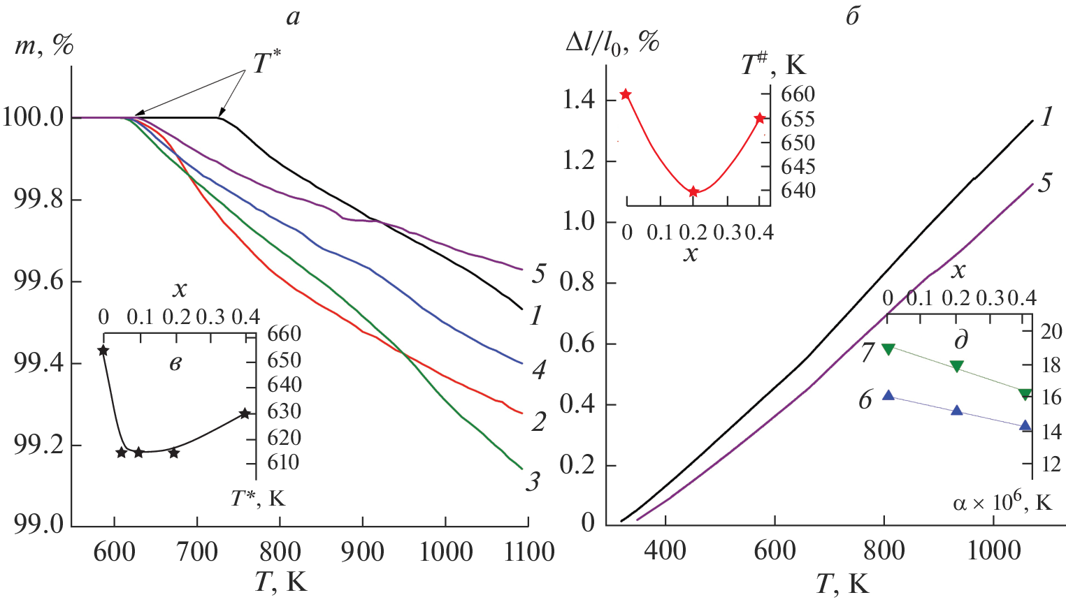 Керамическим методом синтезированы двойные перовскиты NdBa1 ‒ xMgxFe Co0.5Cu0.5O5 + δ (0.00 ≤ x ≤ 0.40), исследованы их структура, кислородная нестехиометрия (δ), термические и электротранспортные свойства. Соединения NdBa1 – xMgxFeCo0.5Cu0.5O5 + δ имеют тетрагональную структуру (пр. гр. симм. P4/mmm) и являются полупроводниками p-типа, характер электропроводности которых при повышенных температурах изменяется на металлоподобный ввиду выделения из образцов кислорода. Частичное замещение бария магнием в NdBaFeCo0.5Cu0.5O5 + δ приводит к уменьшению содержания кислорода в образующихся при этом твердых растворах, возрастанию размеров их элементарной ячейки и коэффициента термо-ЭДС, уменьшению термической стабильности, коэффициента линейного теплового расширения и электропроводности. Рассчитаны значения энергетики электропереноса, взвешенной подвижности и концентрации носителей заряда в изученных материалах.