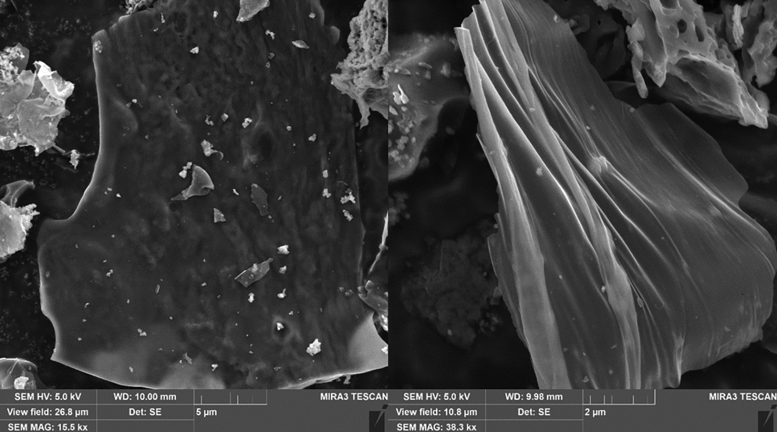 При исследовании введения графеновых пластин от 0.1 до 1 мас. % марки ГПС были получены физико-механические характеристики, представленные в табл. 4. Наноразмерность наполнителя подтверждена сканирующей электронной микроскопией (СЭМ), представленной на рис. 1.