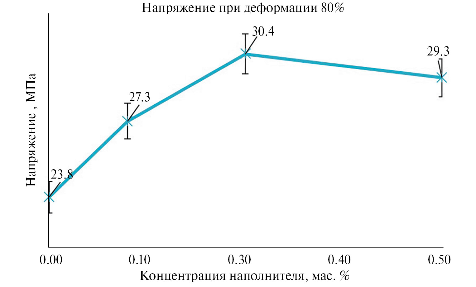 Рис. 6. Зависимость напряжения при 80%-ном сжатии от концентрации УНТ.