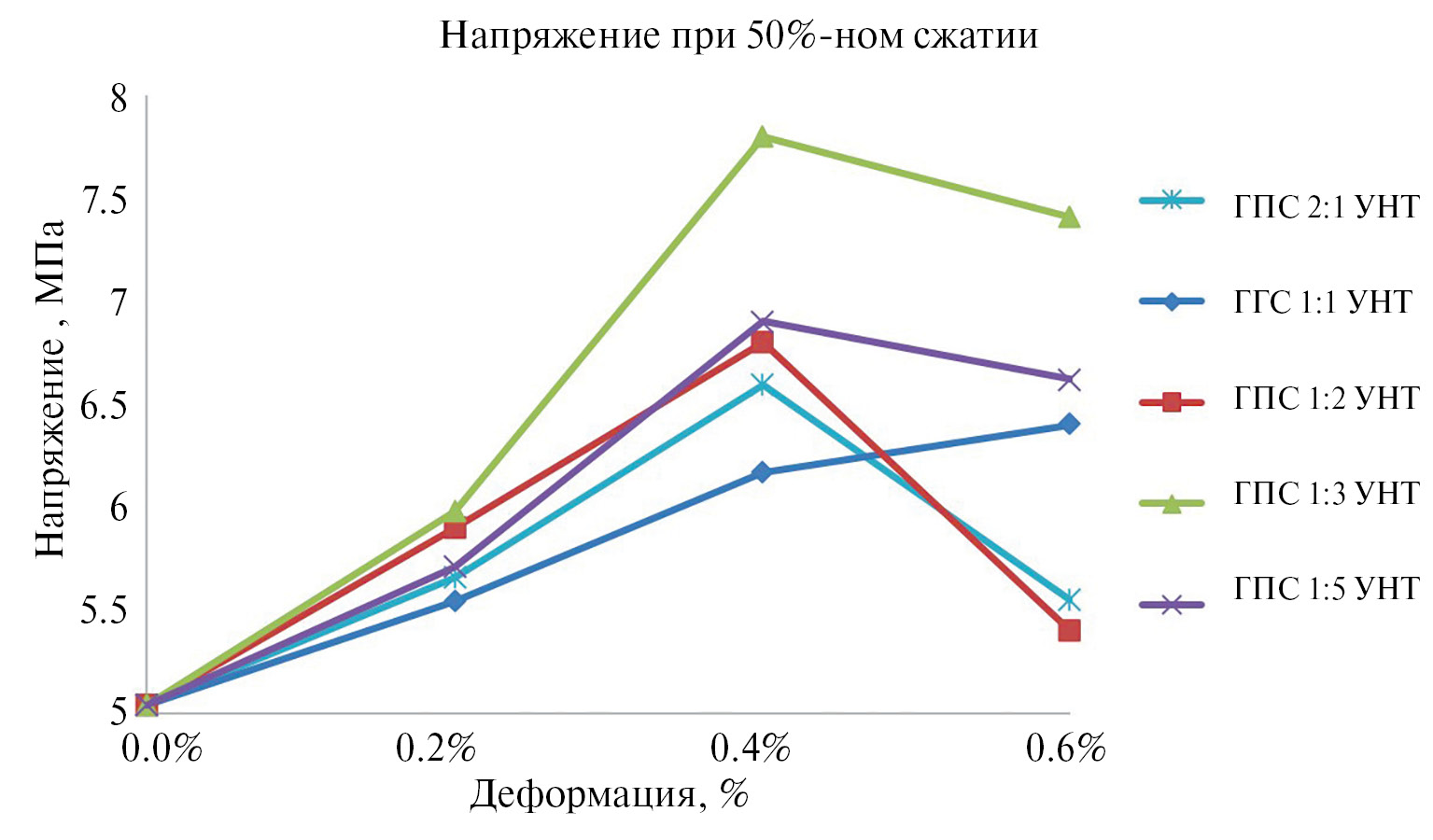 Напряжение при 50%-ном сжатии | 5.04 | 5.5 | 5.3 | 5.2 | 5.6 |