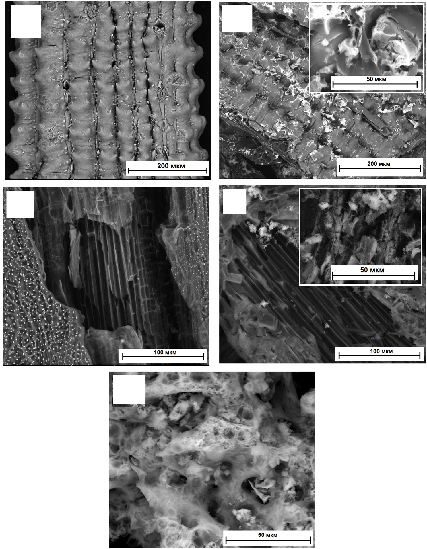 Микрофотографии образцов получены на сканирующем электронном микроскопе Quanta 200. Съемку изображений вели при ускоряющем напряжении до 30 кВ.
