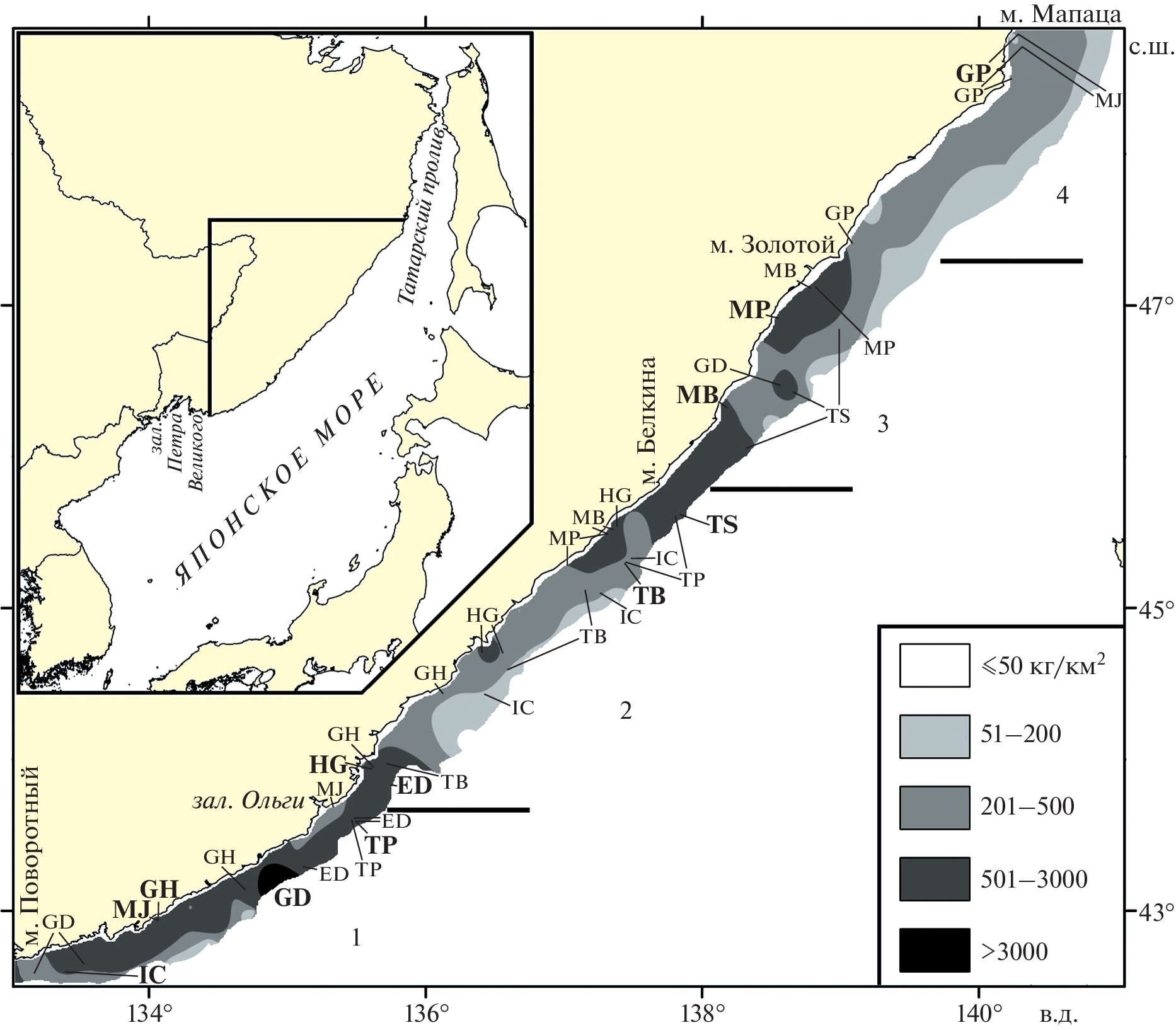 - Кравченко Д.Г., Измятинский Д.В. Оценка обилия донных рыб на шельфе и материковом склоне северного Приморья // Вопр. ихтиологии. 2019. Т. 59. № 4. С. 461–471. https://doi.org/10.1134/S004287521904012X