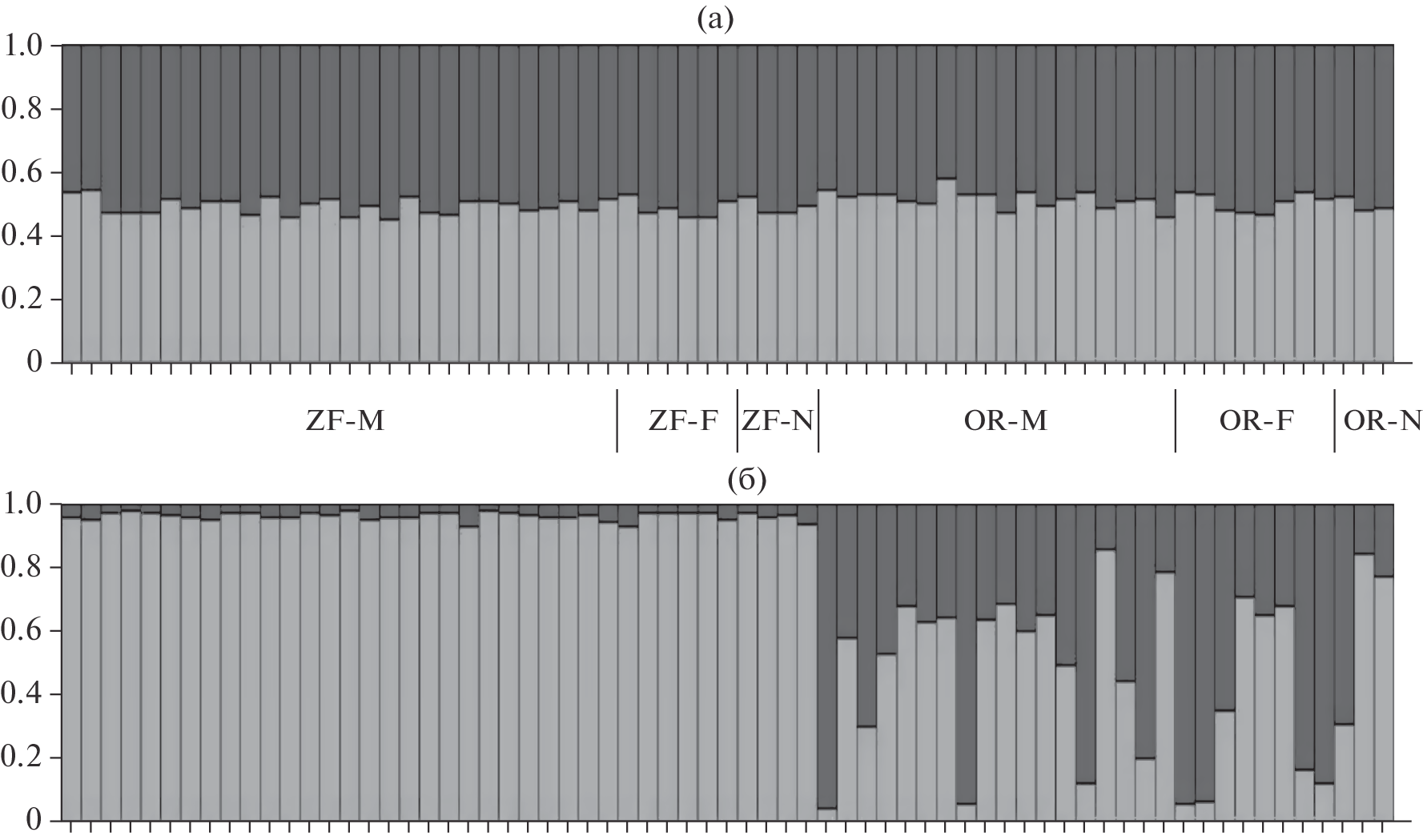 - Pritchard J.K., Stephens M., Donnelly P. Inference of population structure using multilocus genotype data // Genetics. 2000. V. 155. P. 945–959.