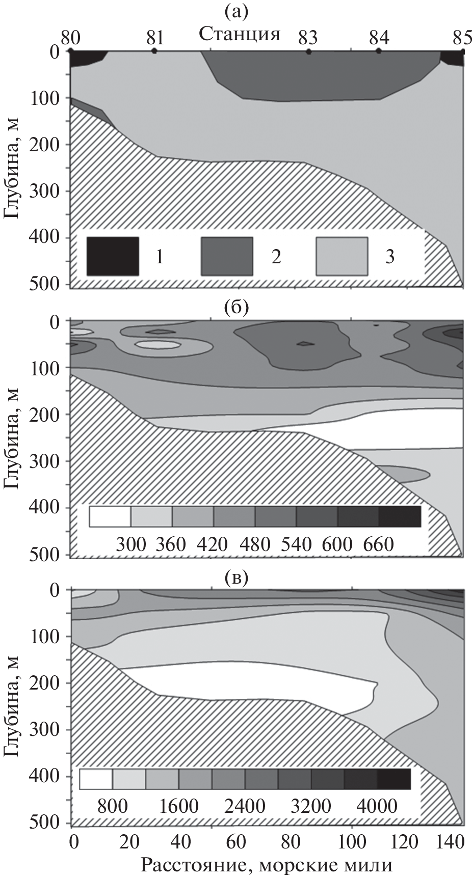 Получены новые сведения о распределении прокариотного планктона и пелагических вирусов в прол. Фрама (Гренландское море) во время полярной ночи (конец ноября). В исследованном районе присутствовали 3 основных типа водных масс: поверхностные полярные, атлантические и трансформированные атлантические. Содержание минеральных биогенных элементов увеличивалось с глубиной. Концентрация хлорофилла а имела низкие значения (0.07–0.13 мг/м3). Численность и биомасса прокариот колебались от 286 тыс. до 675 тыс. кл/мл и от 2.7 до 11.7 мг С/м3 соответственно. В составе прокариотного планктона доминировали одиночные мелкие клетки (более 97% численности и более 68% биомассы). Средний объем клеток составлял 0.034–0.096 мкм3. Количество вирусов варьировало от 724 тыс. до 3920 тыс. частиц/мл, биомасса – от 0.040 до 0.216 мкг С/м3. На фоне локальных максимумов численности прокариотного планктона в слое 0–25 м наибольшие величины концентрации вирусов отмечены в поверхностном слое. В широтном распределении (с юга на север) выявлено повышение количества вирусов и прокариот. Установлена тесная связь их численности и биомассы с гидрологическими параметрами и содержанием фосфатов, роль тех или иных водных масс в вертикальном распределении микробов была несущественной. Относительно высокое обилие вирусов и прокариот свидетельствовало об их значительной активности в период полярной ночи.