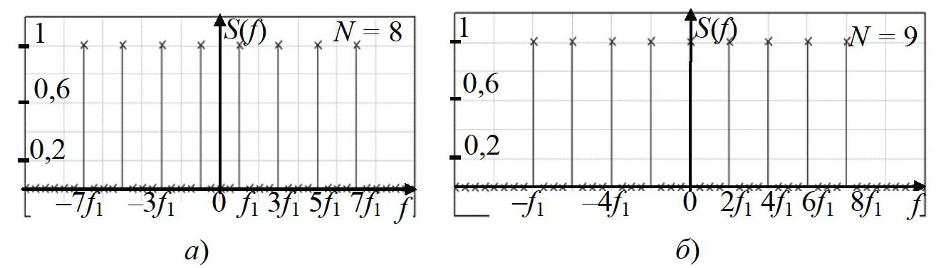 – f = (2k + 1)∙f1 при четных N (рис. 11, а);