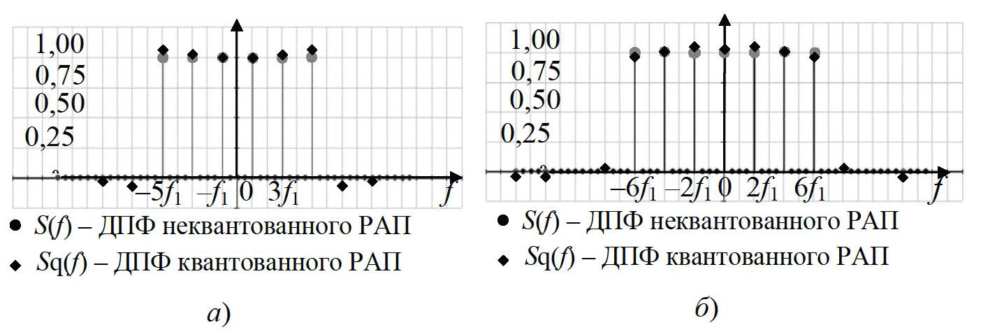 Следовательно, в полосе f ∈ (–Nf1, Nf1) спектр квантованного РАП существует в тех же точках, что и дискретизированного неквантованного.