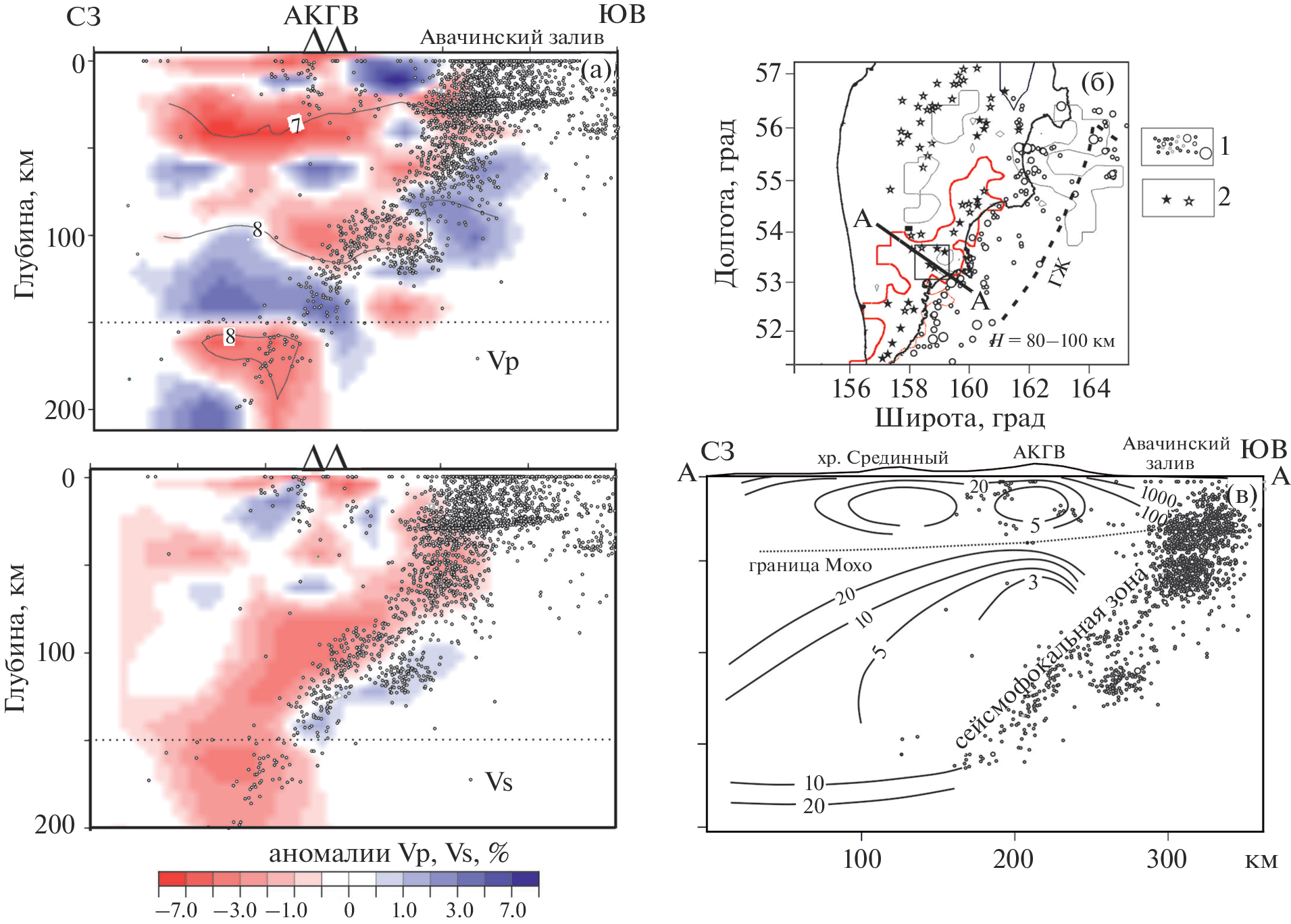 - Nizkous I., Sanina I., Kissling E. et al. Velocity properties of ocean-continent transition zone lithosphere in Kamchatka region according to seismic tomography data // Physics of the Solid Earth. 2006. V. 42. № 4. P. 286–296.