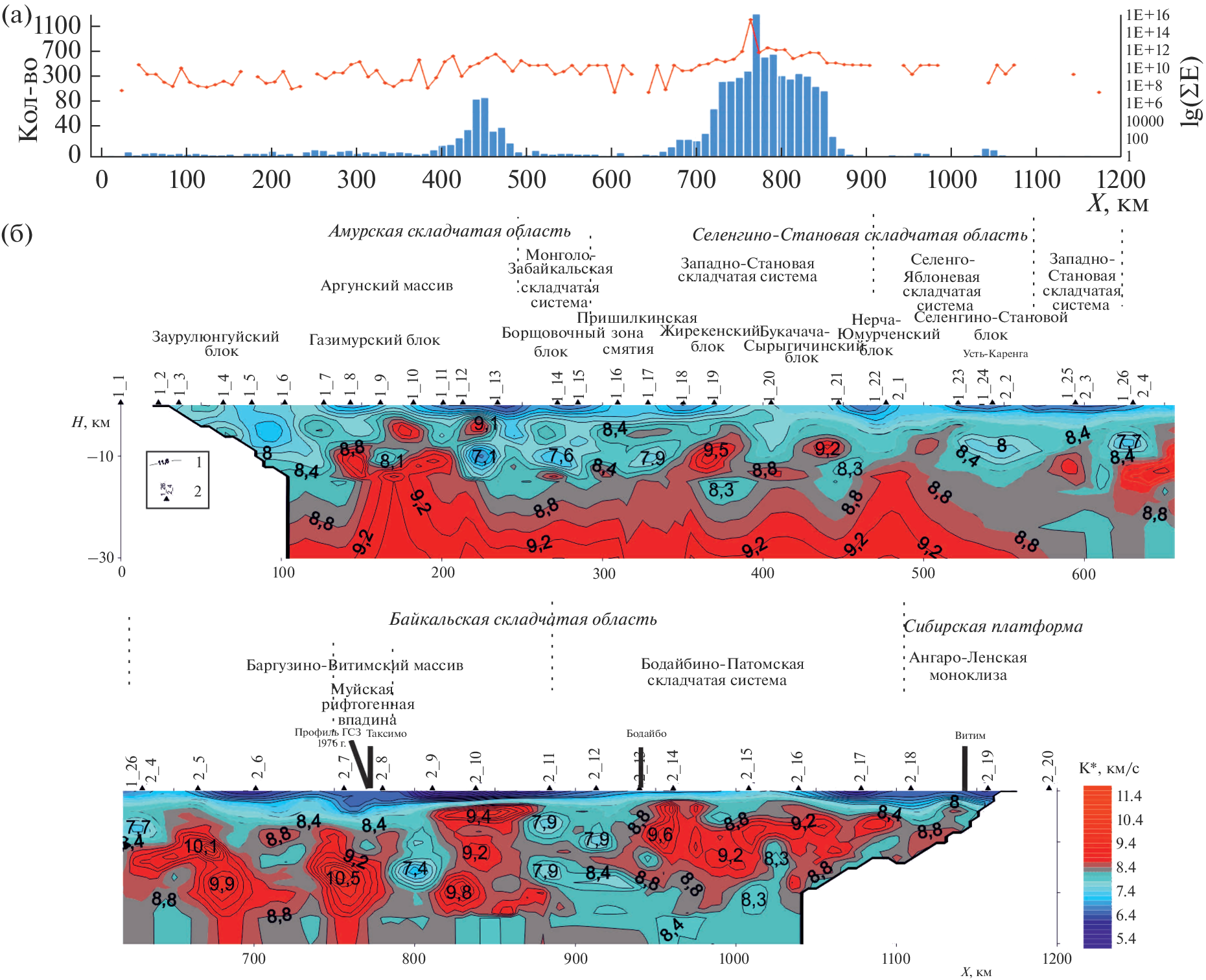Глубинное скоростное строение и сейсмичность Забайкалья (в створе опорного геолого-геофизического профиля 1-СБ)