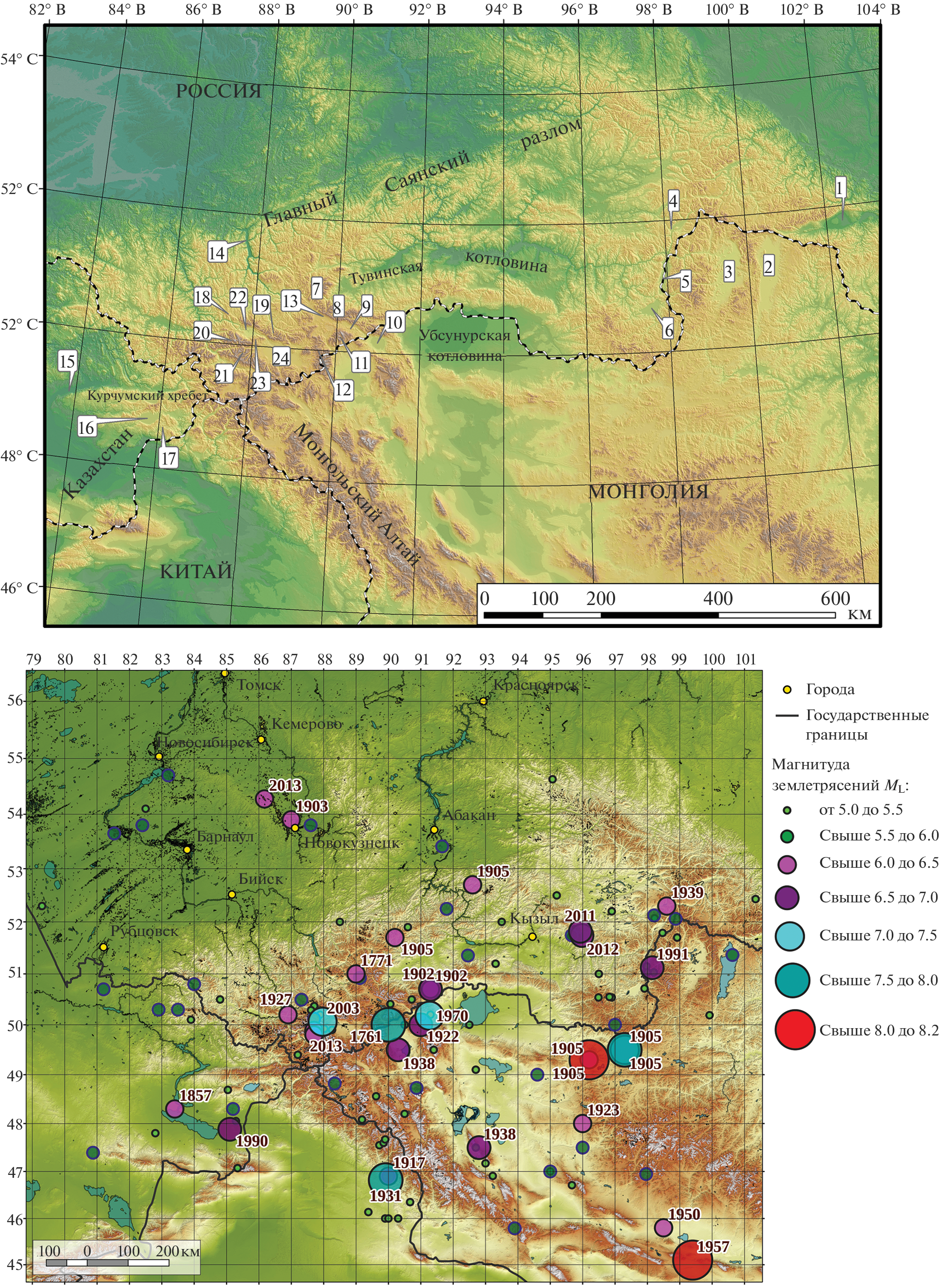 - Еманов А.Ф., Еманов А.А., Фатеев А.В., Соловьёв В.М., Шевкунова Е.В., Гладышев Е.А., Антонов И.А., Корабельщиков Д.Г., Подкорытова В.Г., Янкайтис В.В., Елагин С.А., Серёжников Н.А., Дураченко А.В., Артёмова А.И. Сейсмологические исследования на территории Алтае-Саянской горной области // Российский сейсмологический журн. 2021в. Т. 3. № 2. С. 20–51. https://doi.org/10.35540/2686-7907.2021.2.02